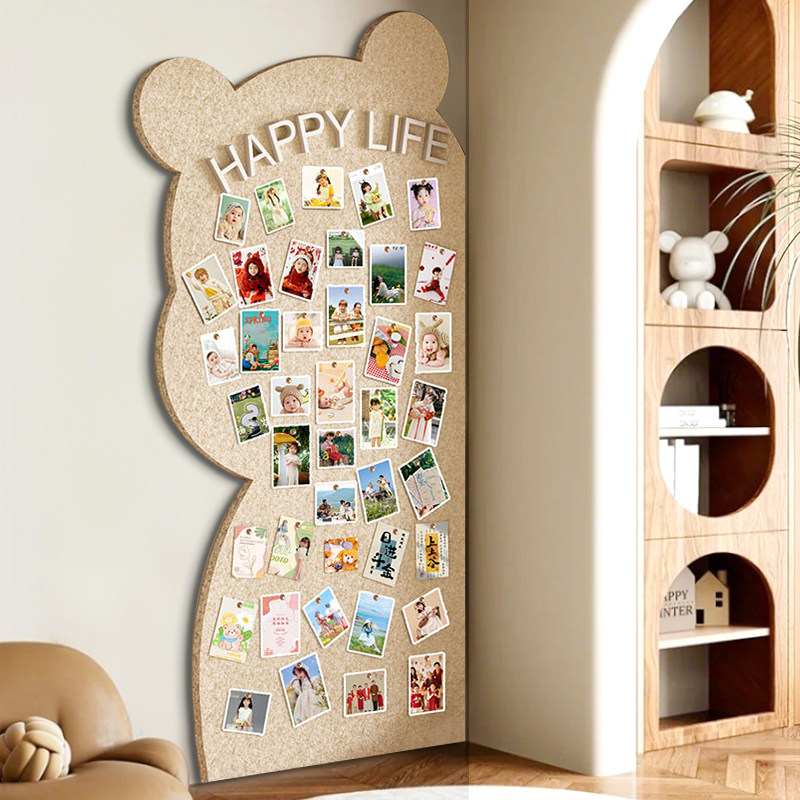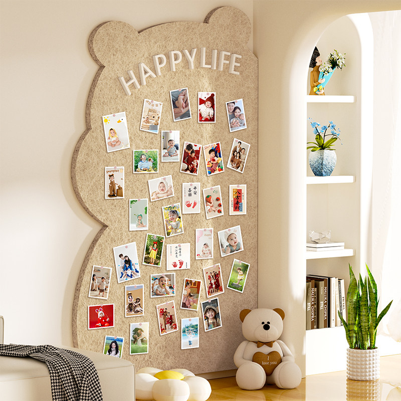 毛毡板可爱熊照片墙毛粘墙贴背景板软木板展示墙画画作品展示创意墙壁装饰高级感客厅拍立得相片墙入户留言板
