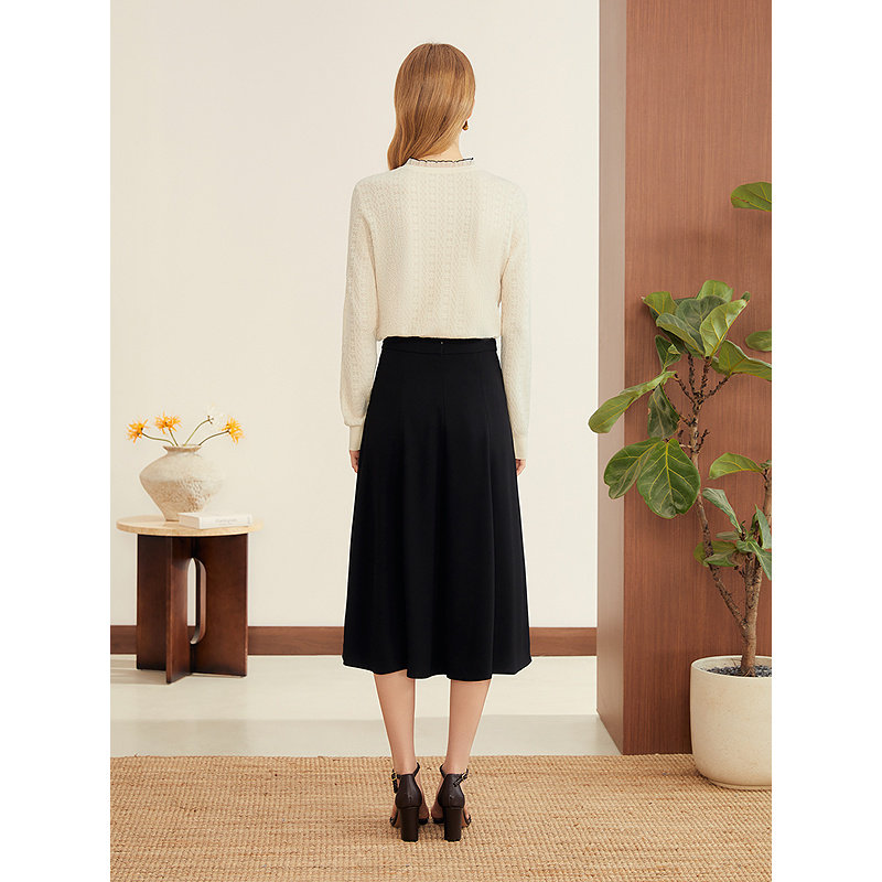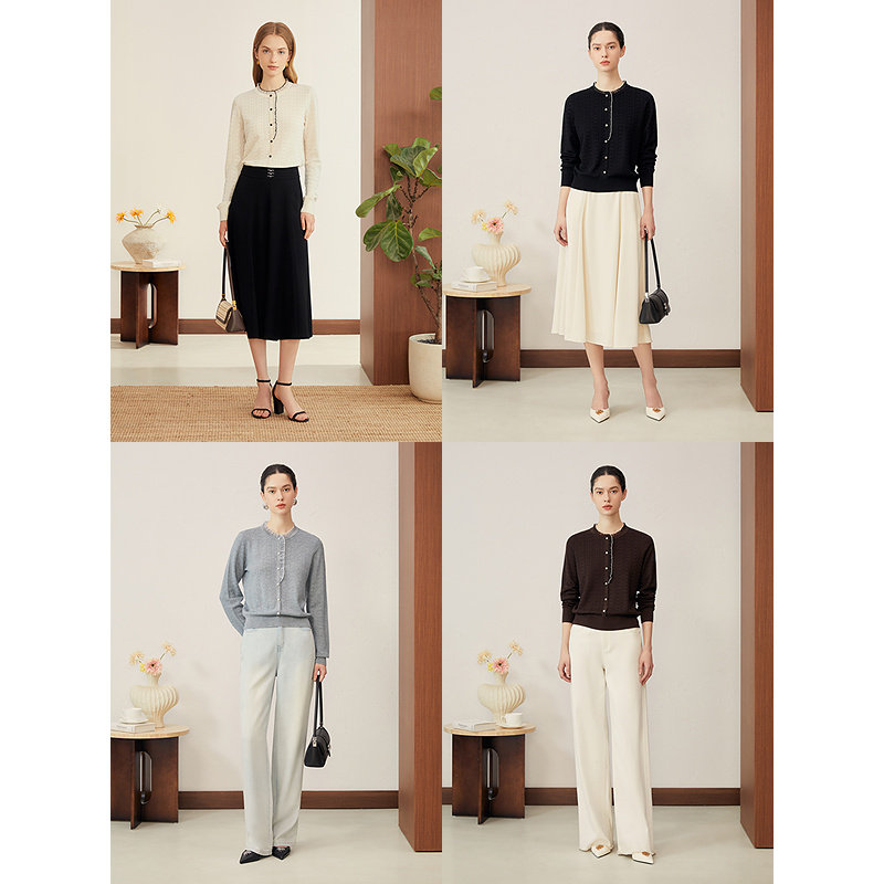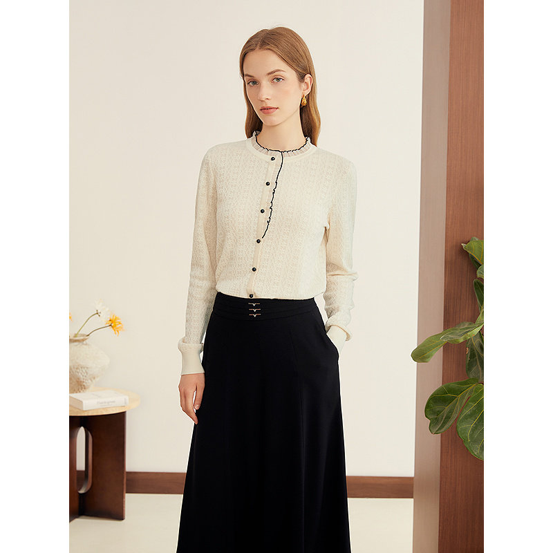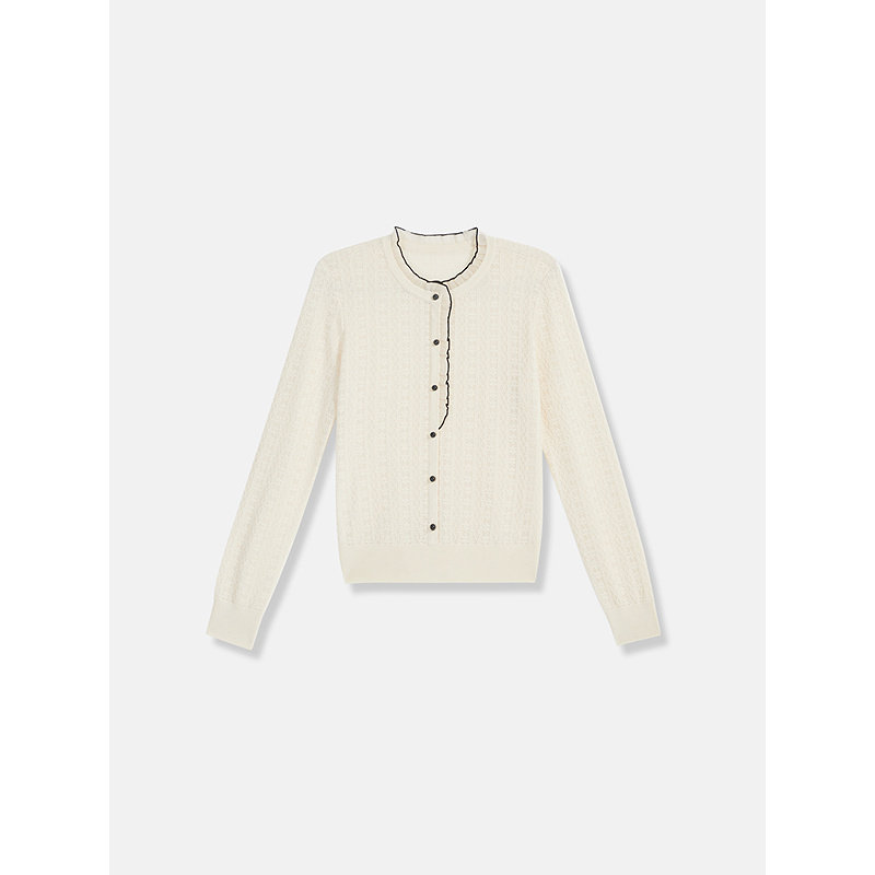 YINER音儿专选2025秋季新款新中式木百合花提花木耳边拼接针织衫
