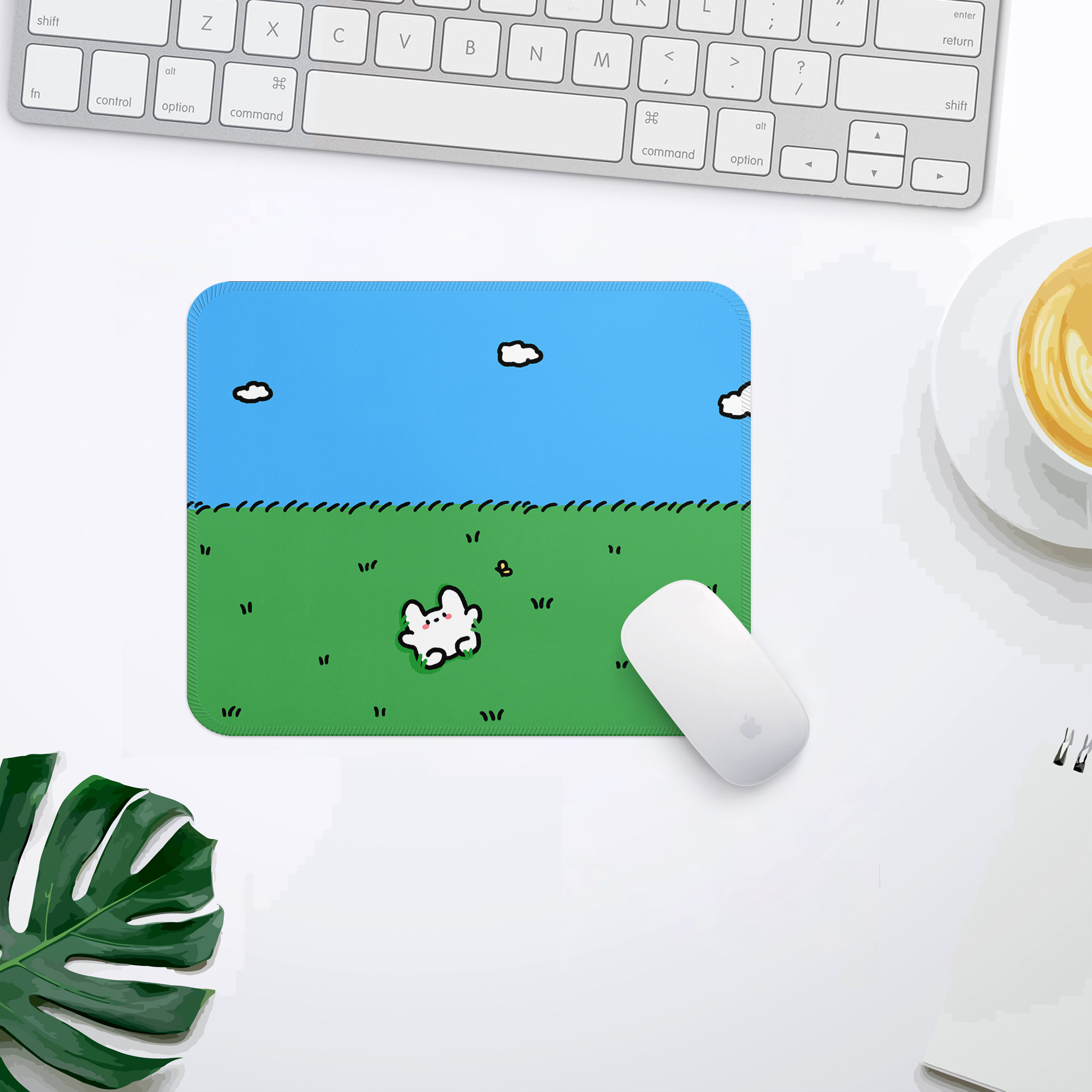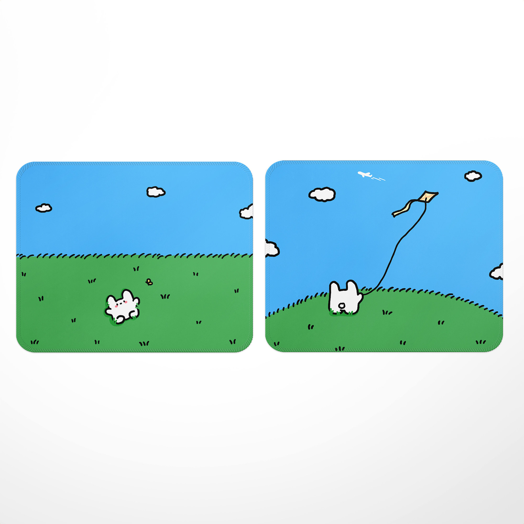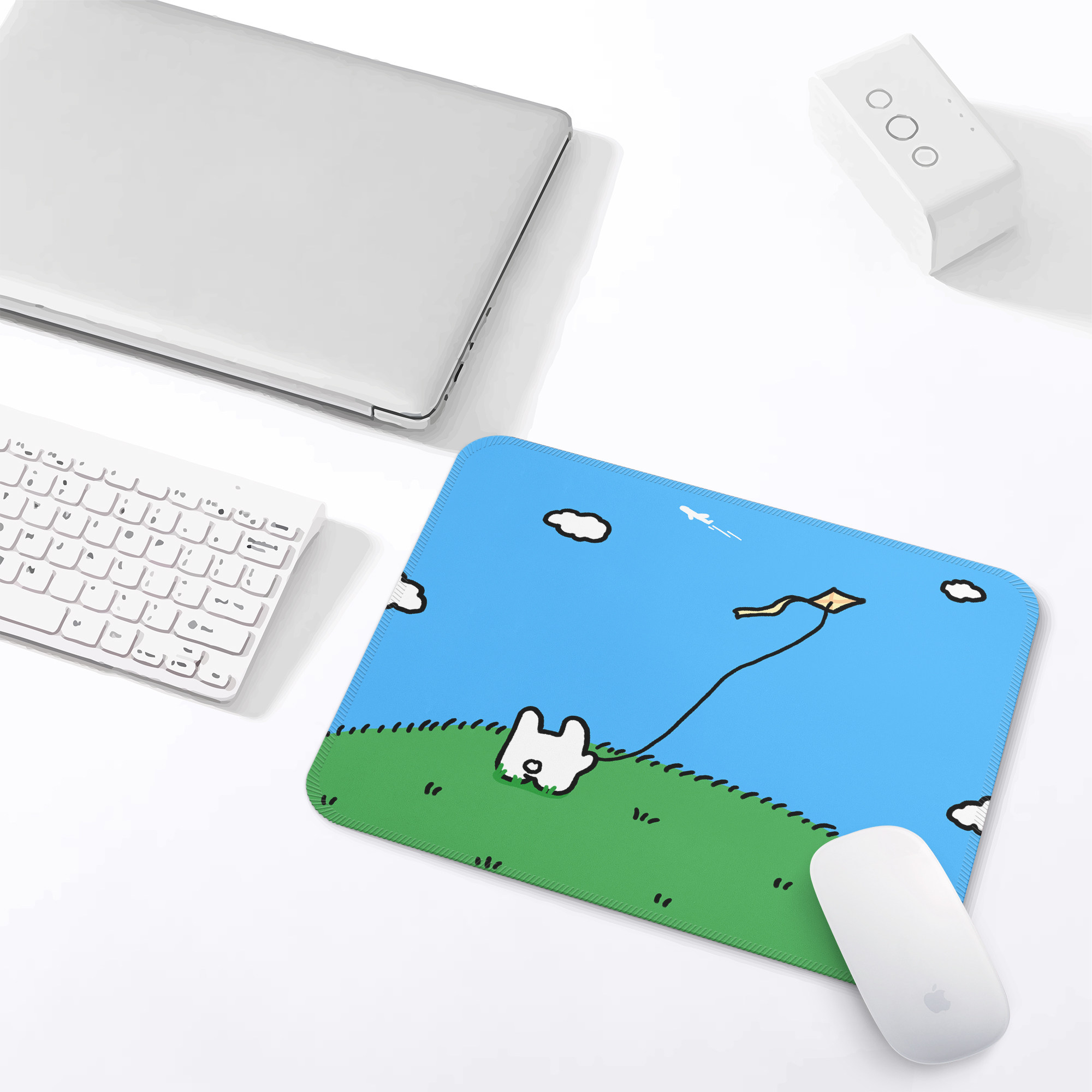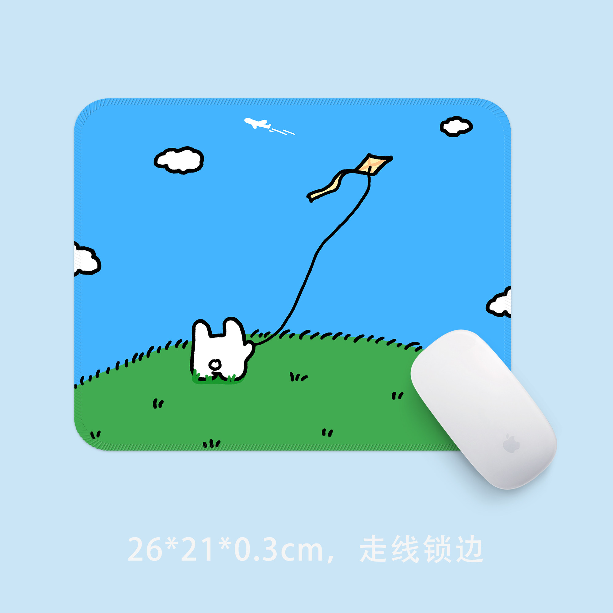 条形兔蓝天绿地鼠标垫|必易文创草地放风筝卡通方形锁边防滑桌垫