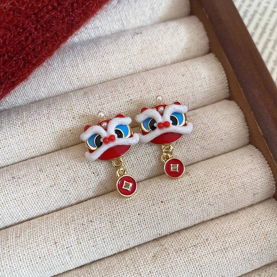 国潮醒狮新年耳环女耳钉2025新款爆款高级感适合冬天的耳饰