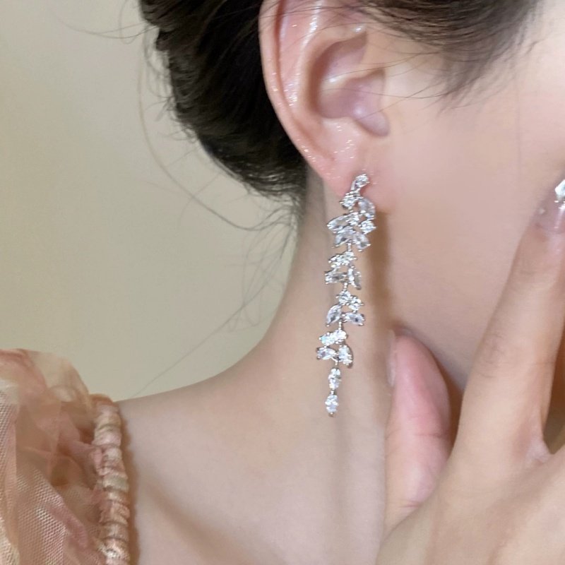 S925纯银针长款流苏显瘦耳环无耳洞耳夹2026新款爆款气质耳钉