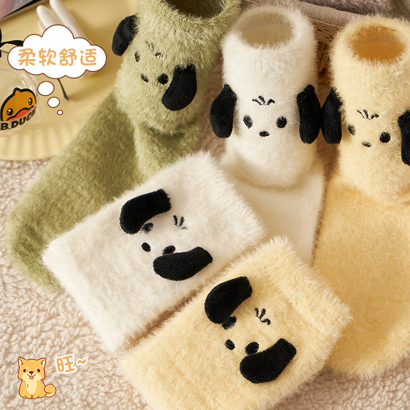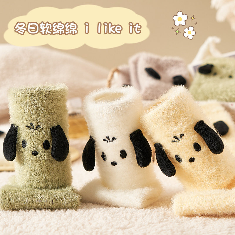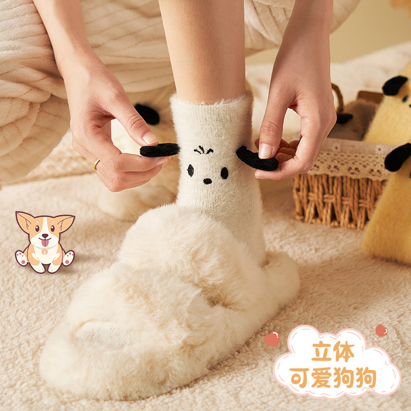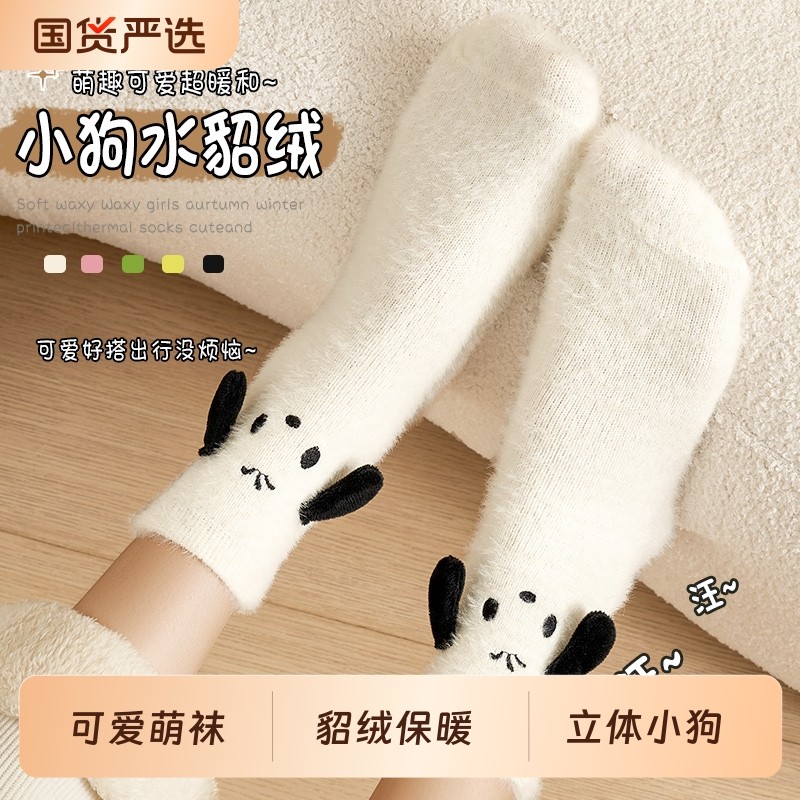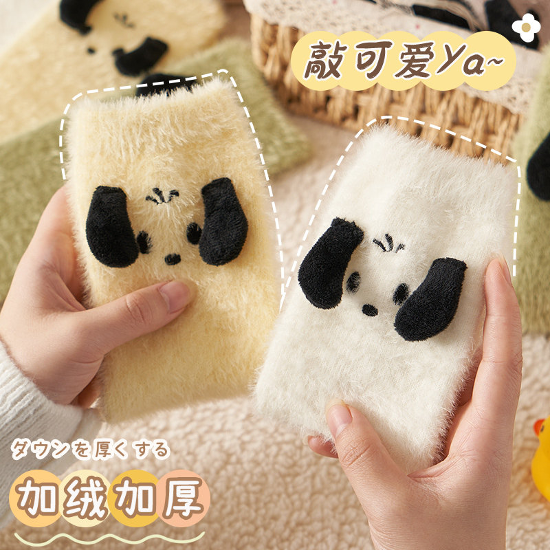 水貂绒袜子女冬季加绒居家地板袜卡通可爱睡眠袜厚袜子珊瑚绒中筒