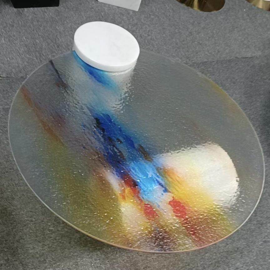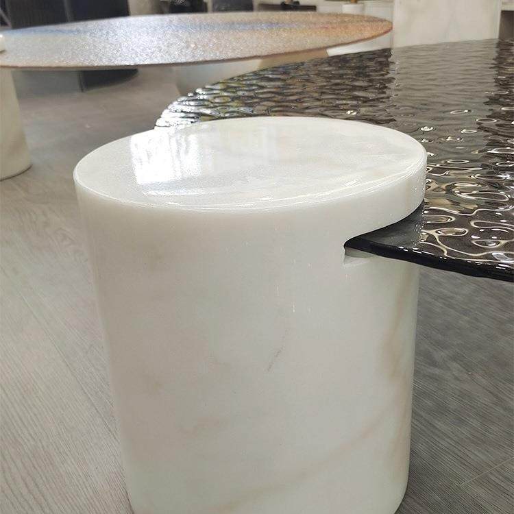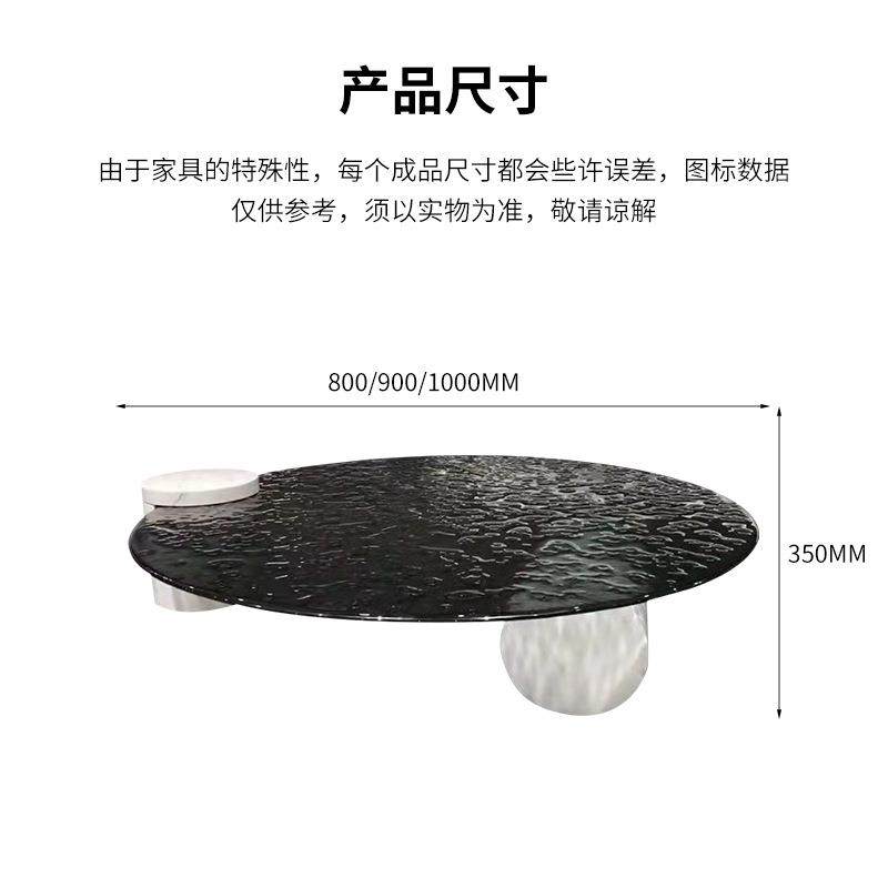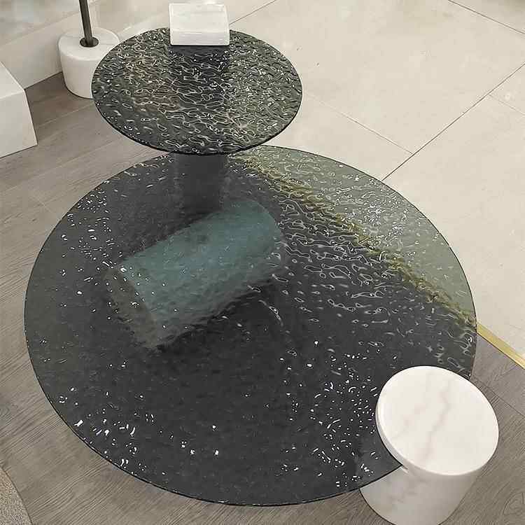 水波纹钢化玻璃茶几大理石底座客厅创意防爆组合家具轻奢圆形