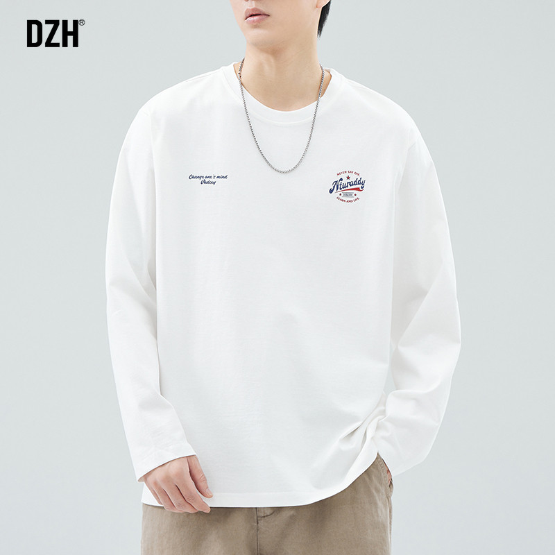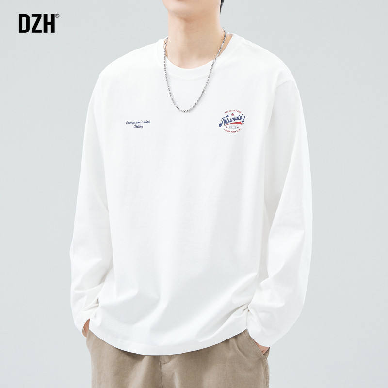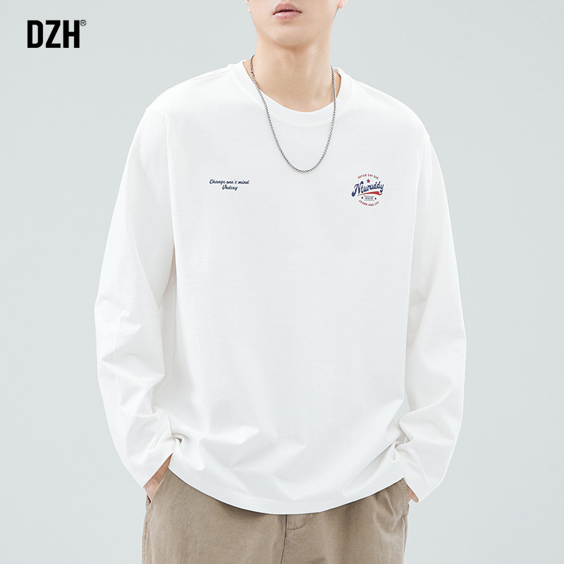 男士白色长袖t恤男纯棉秋季打底衫上衣衣服宽松卫衣2025新款男装