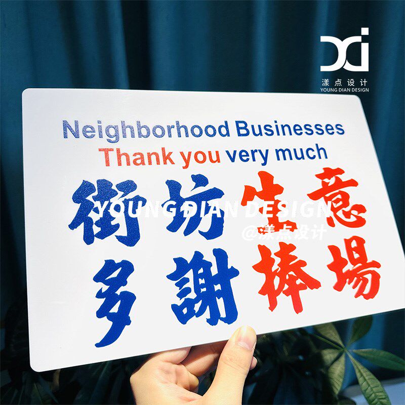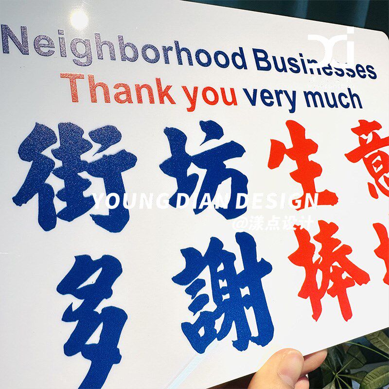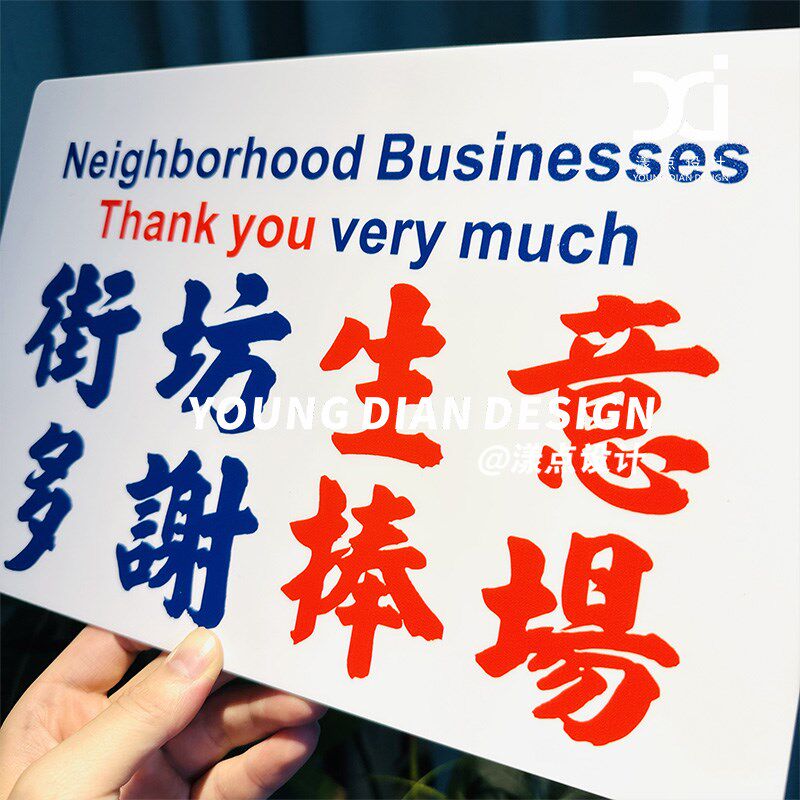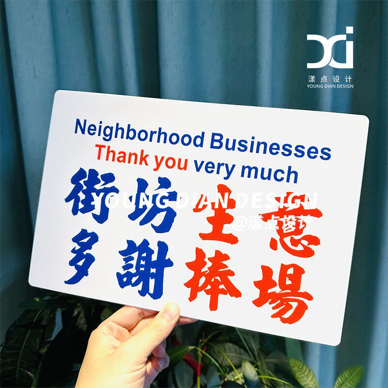 街坊生意多谢捧场提示牌港风亚克力D标识牌装饰牌告示牌个性化定