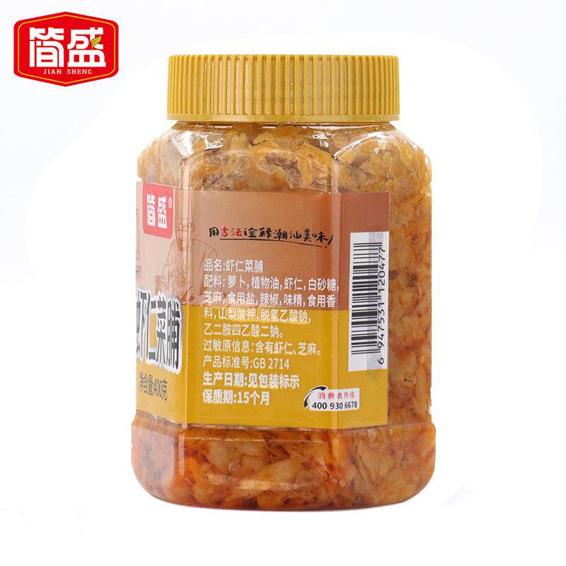 简盛潮汕正宗虾仁菜脯400g大瓶装咸菜下饭菜橄榄菜汕头老牌酱菜