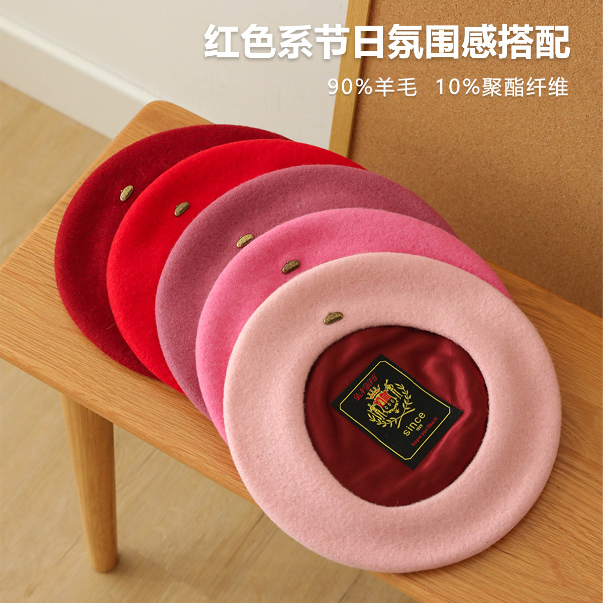Classy key新加坡设计师联名款英伦风复古贝雷帽显脸小毛呢画家帽