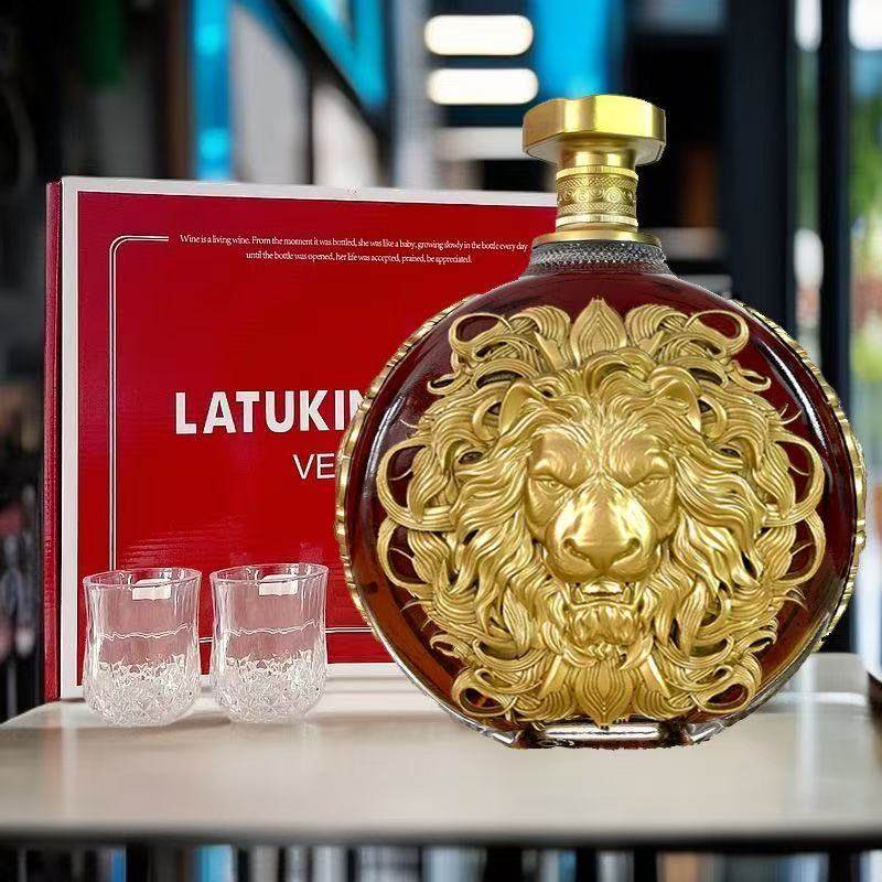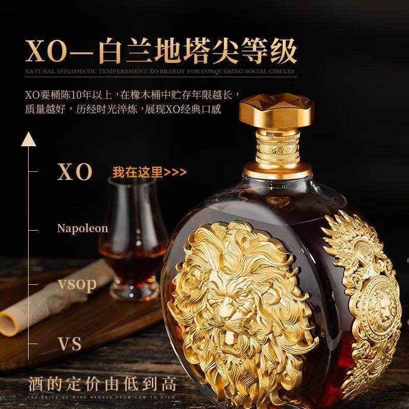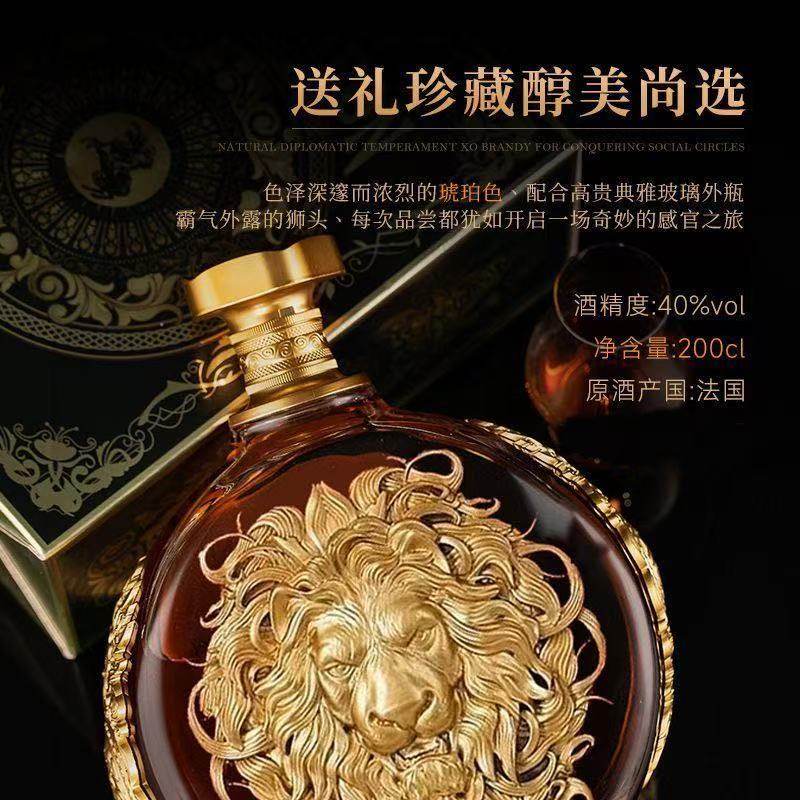 2000ML超大瓶正品40度洋酒狮王纪念版XO白兰地干邑送水晶杯*2