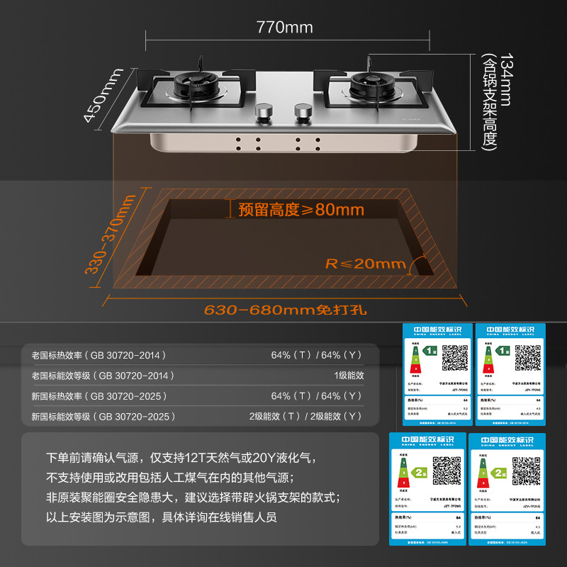 [新品]方太TF25G不锈钢燃气灶双灶台家用嵌入式天然气灶官方旗舰
