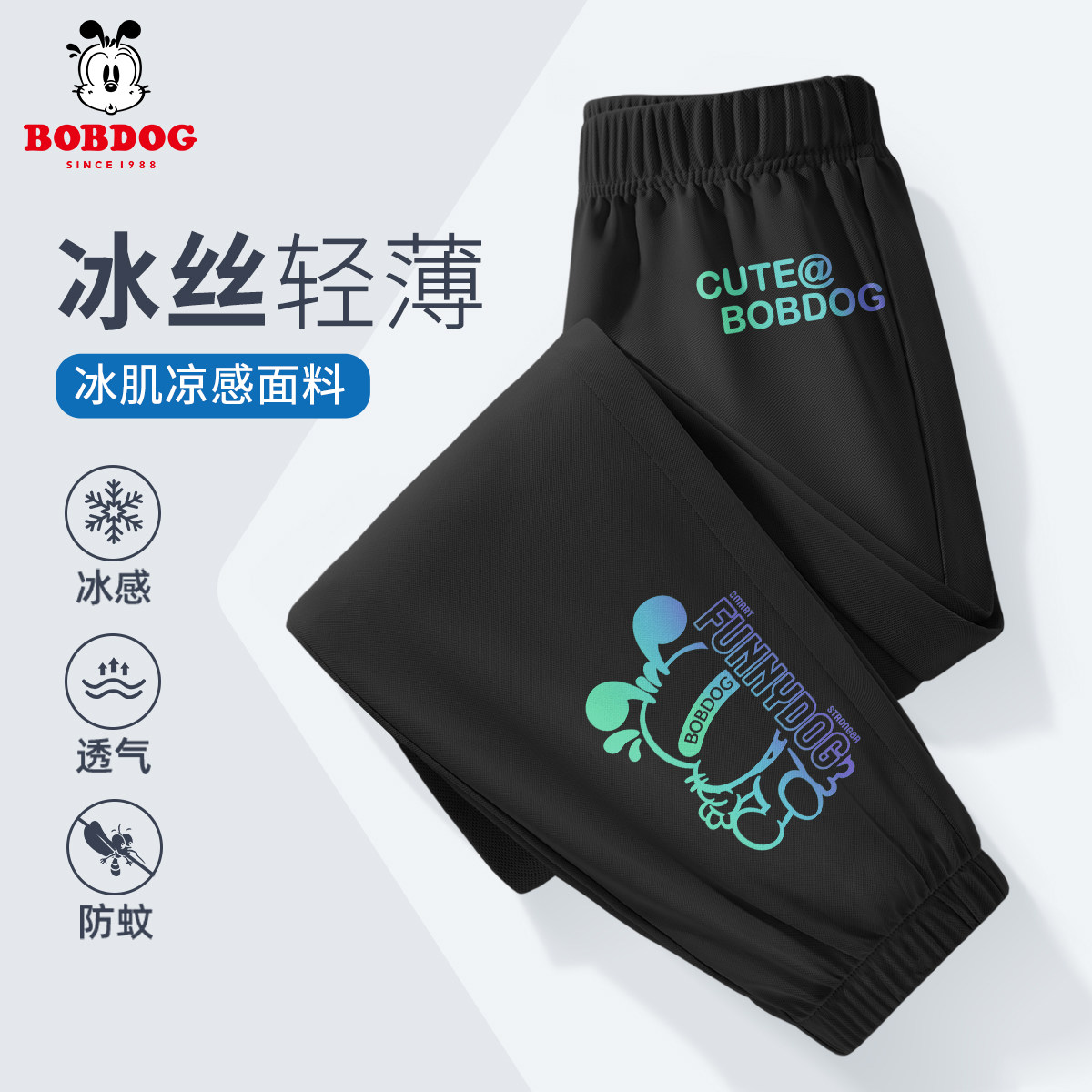 巴布豆男童裤子夏季薄款2025新款宽松大童冰丝速干长裤儿童防蚊裤