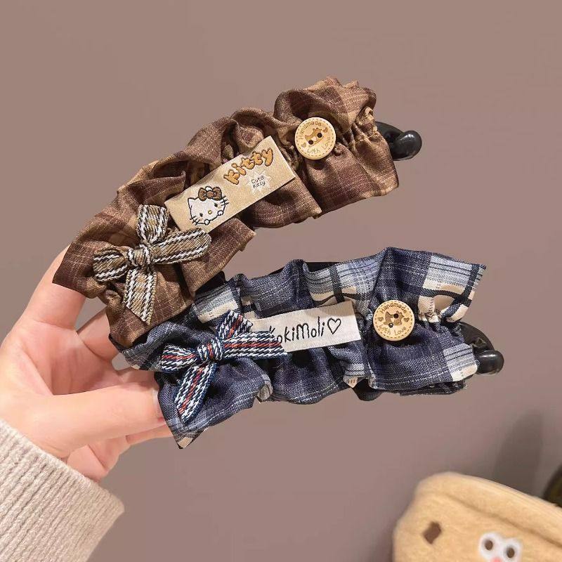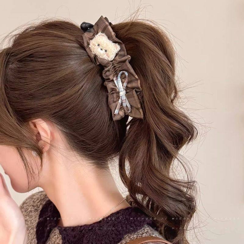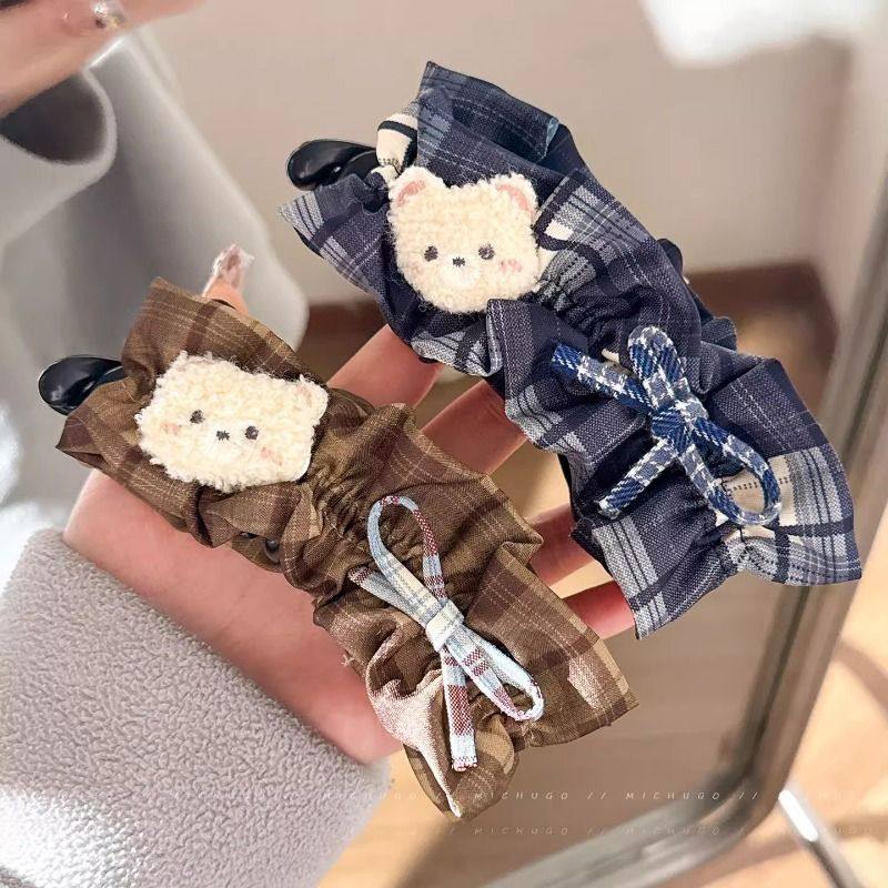 韩系可爱小熊格纹发夹香蕉夹女后脑勺马尾竖夹盘发甜美发卡子发饰