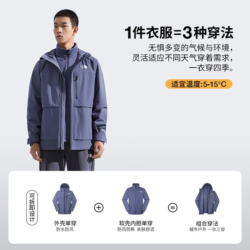 北面男Ranger软壳三合一冲锋衣外套防水保暖冬TheNorthFace|89ZS