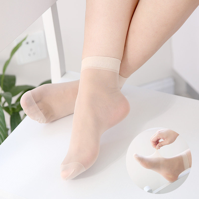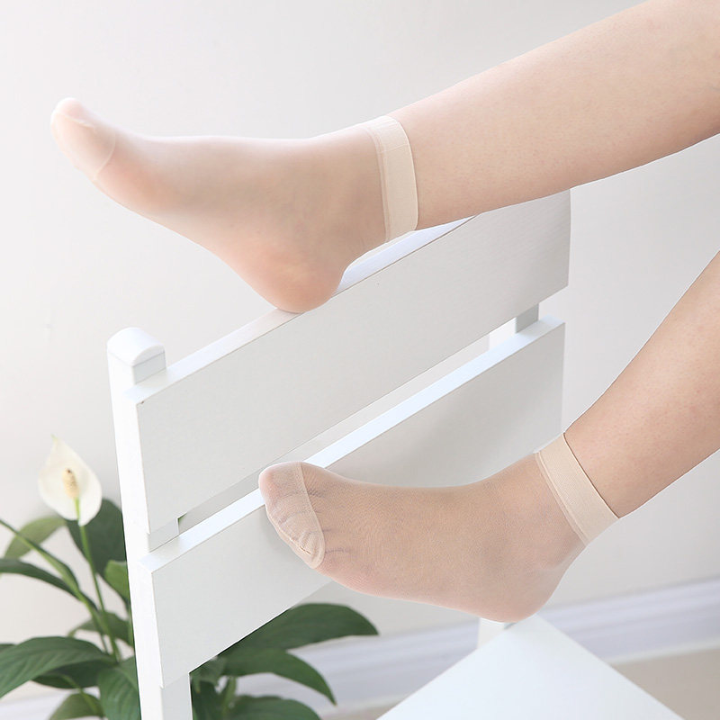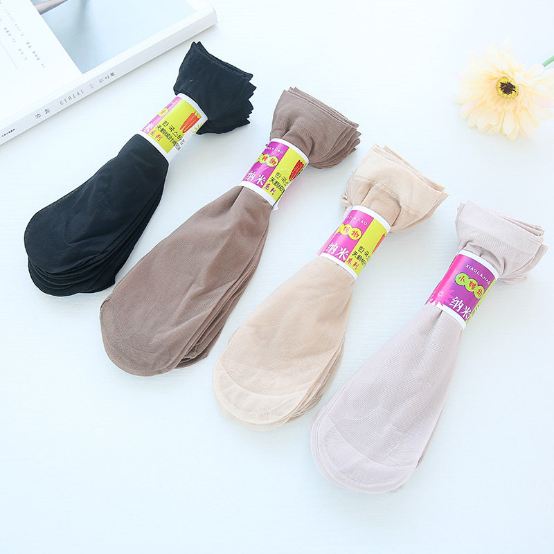 浪莎丝袜女春秋薄款水晶丝短袜耐磨防勾夏季黑肉色棉底袜子中筒袜