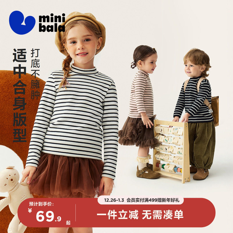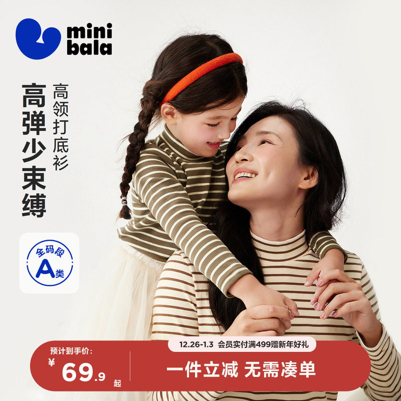 迷你巴拉巴拉亲子儿童男女童长袖T恤2025冬新一家三口高弹打底衫