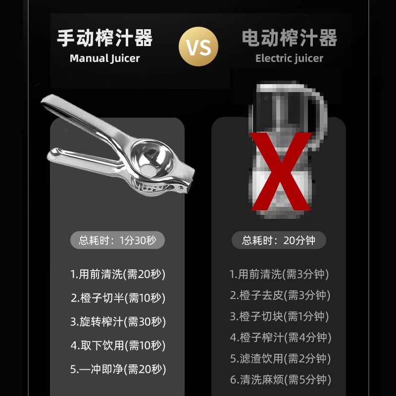 不锈钢手动榨汁器挤柠檬汁神器家用手压式橙子夹子小型果汁机水果