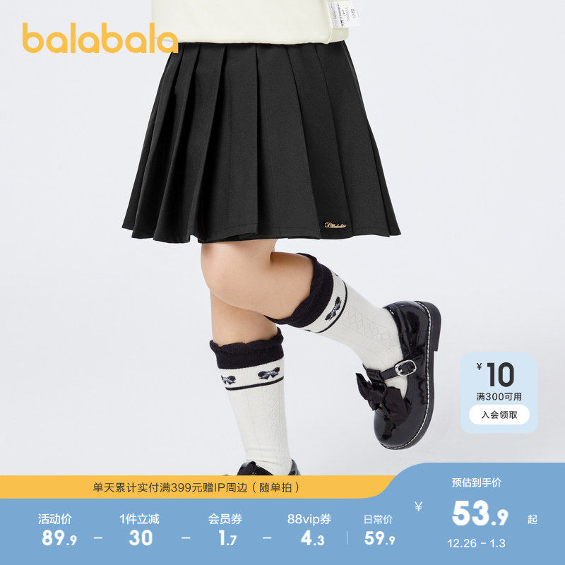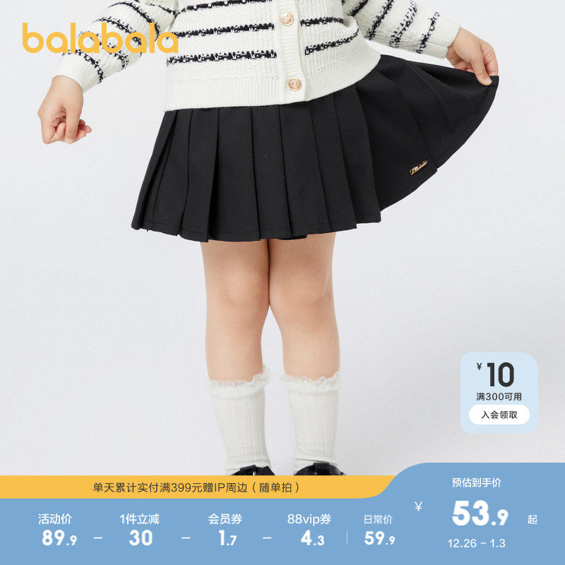 巴拉巴拉童装女童短裙儿童百褶裙秋季裙子时尚百搭半身裙学院风潮