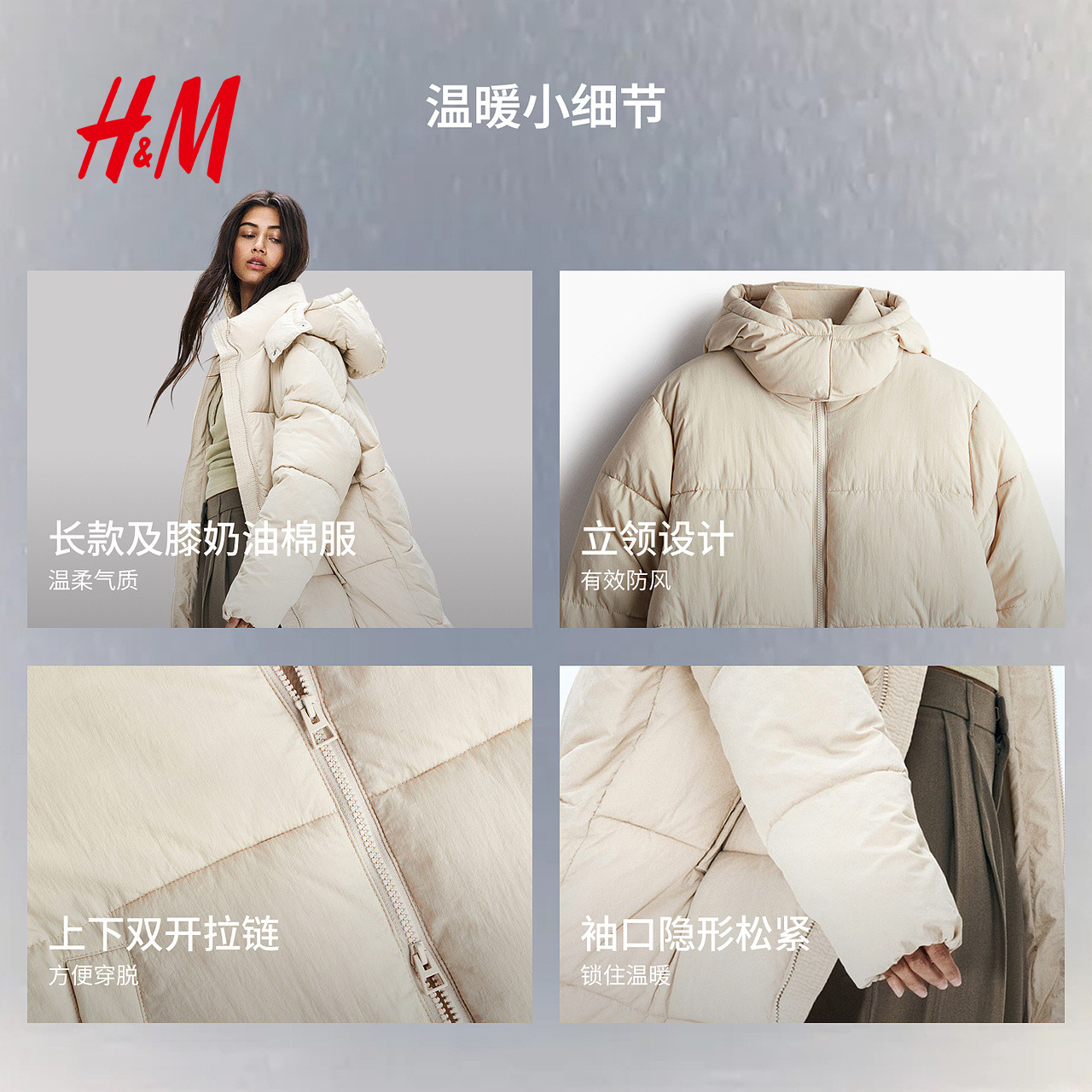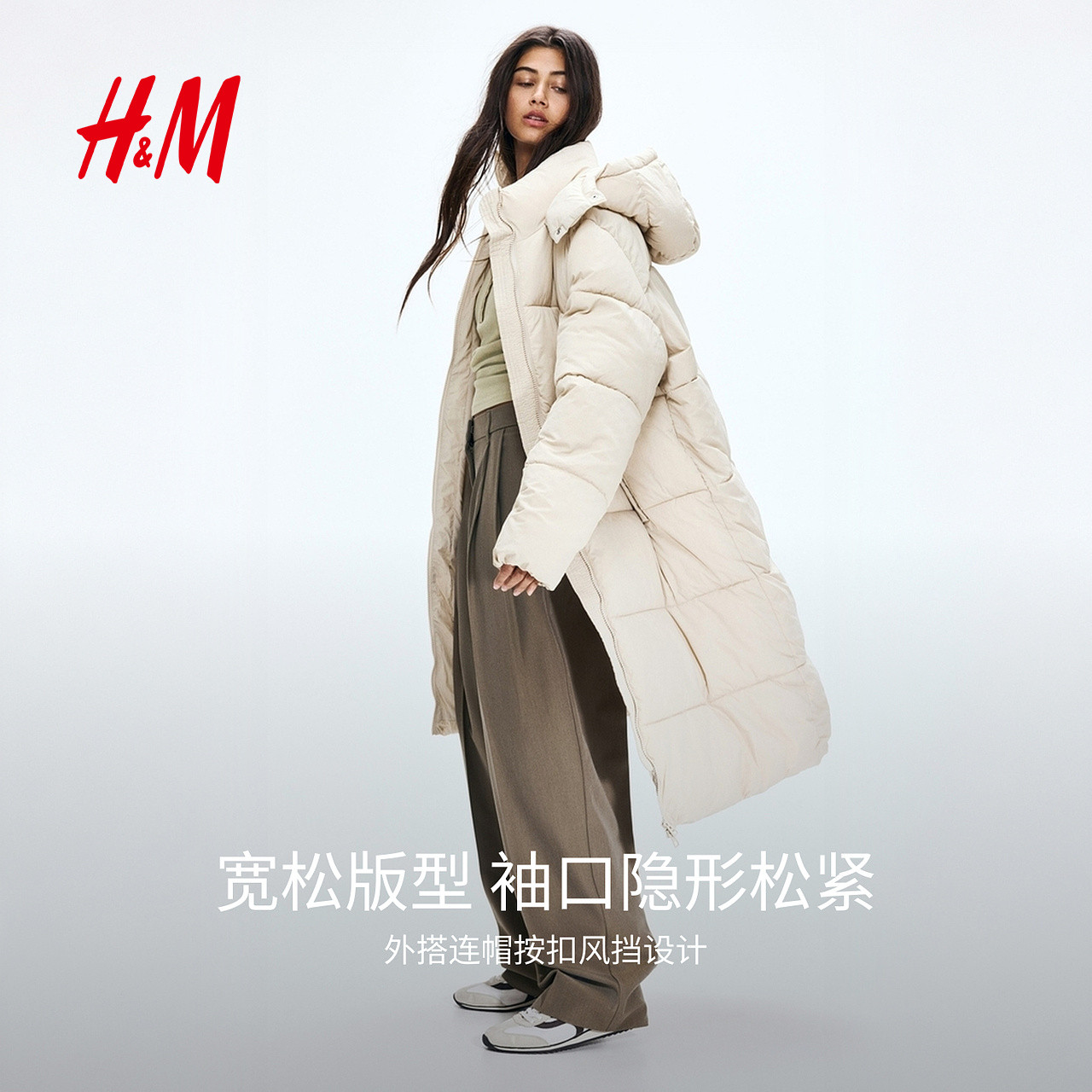 HM女装棉服暖乎乎冬日ootd外出保暖宽松长棉衣夹克外套1168456