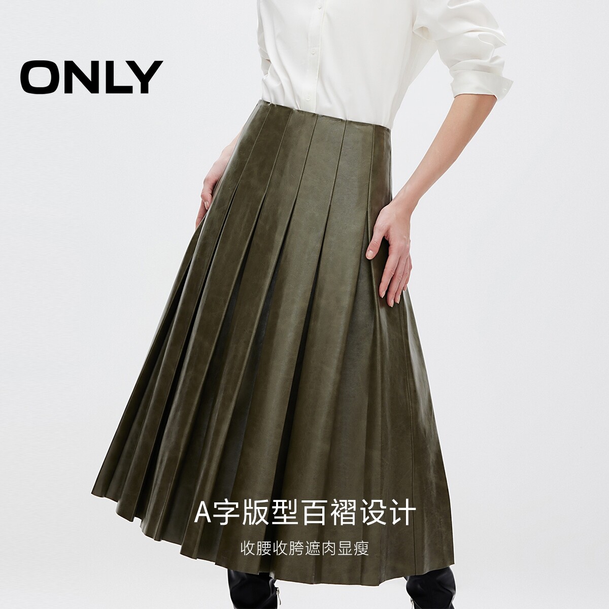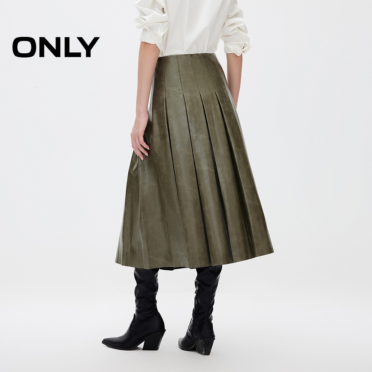 ONLY2026春季新款简约时尚高腰PU百褶裙中长裙半身裙女|12516S002