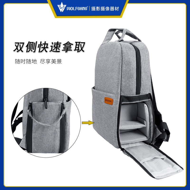 沃尔夫冈(WOLFGANG)双肩摄影包电脑收纳包单反相机包通勤旅行户外双肩包用于佳能富士相机内胆包SJ80
