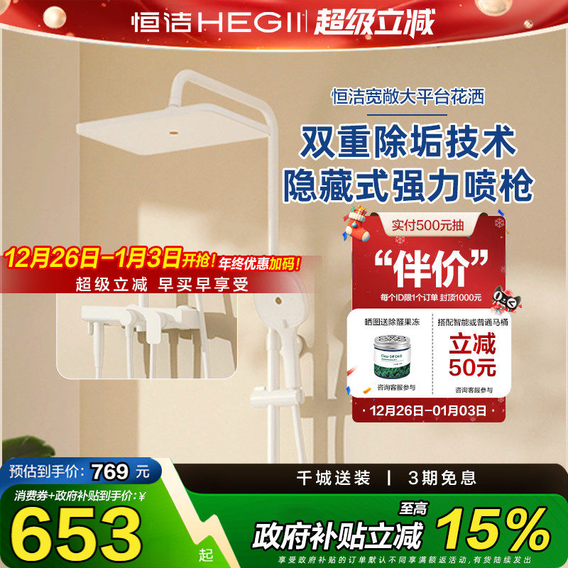 【政府补贴15%】恒洁花洒钢琴按键淋浴花洒套装除垢
