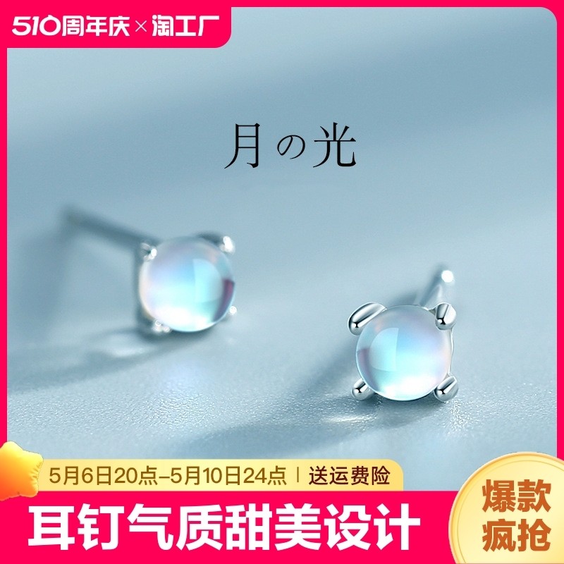 925银月光石耳钉女气质小众设计耳环2024年新款养耳洞小耳饰镂空
