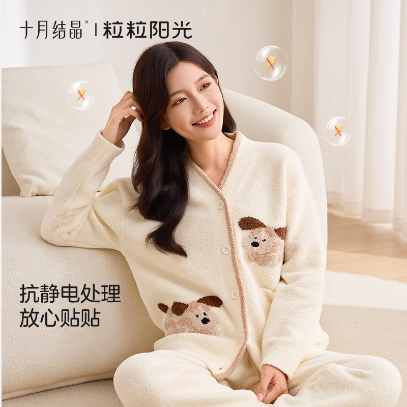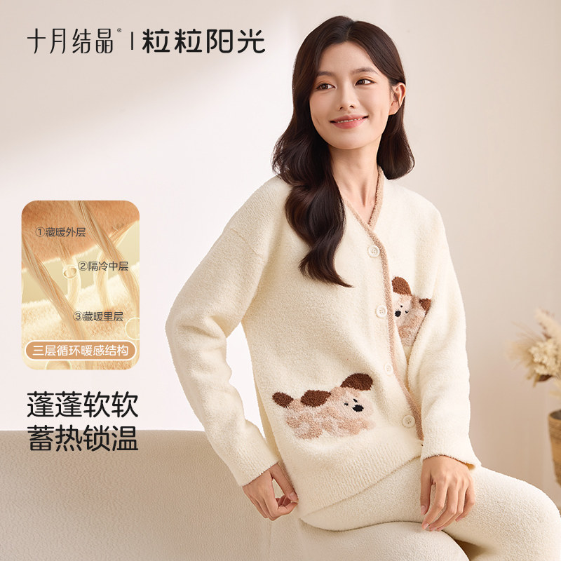 【新品】十月结晶月子服亲子睡衣冬季款加厚保暖半边绒家居服套装