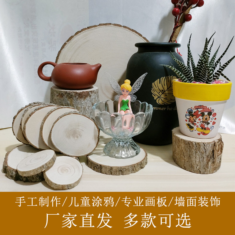 年轮画板带皮实木天然无添加儿童绘画材料杯垫手工制作背景墙挂饰