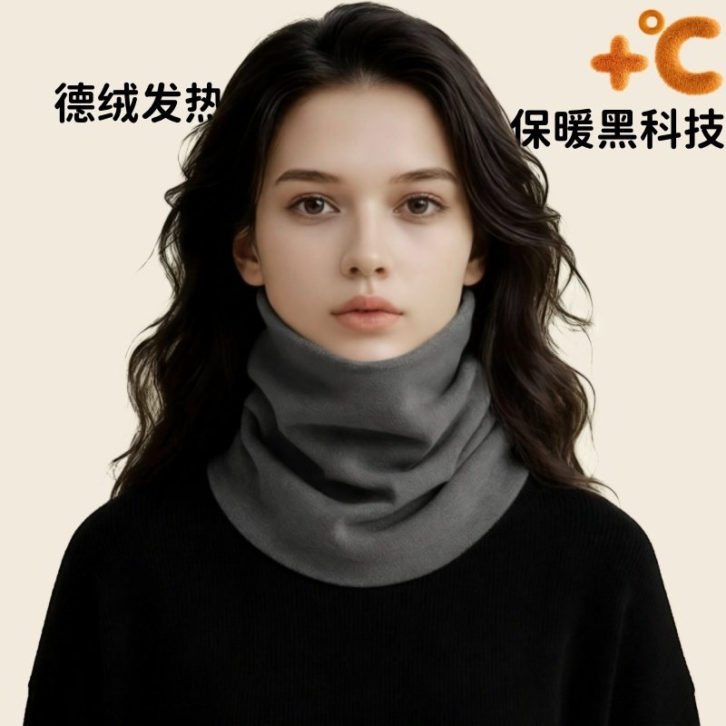 发热德绒加绒加厚脖子套保暖防风防寒护脖颈套纯色男女款围脖秋冬