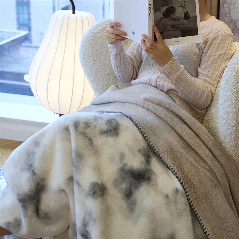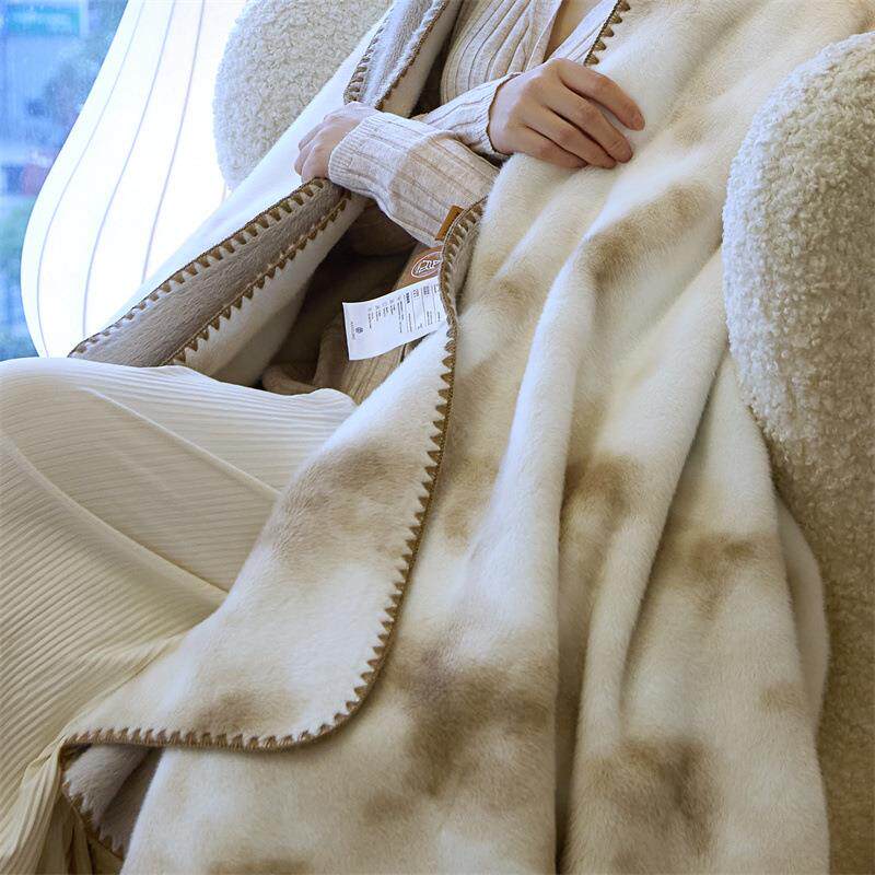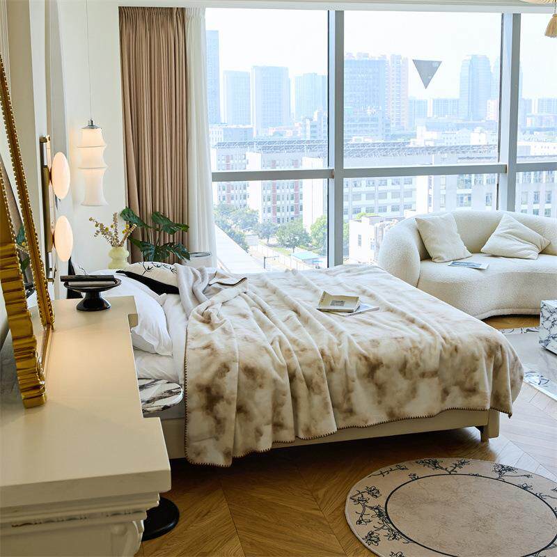 贵妇毯 轻奢金貂绒水墨印花金貂绒盖毯毛毯毯子样板间别墅防静电
