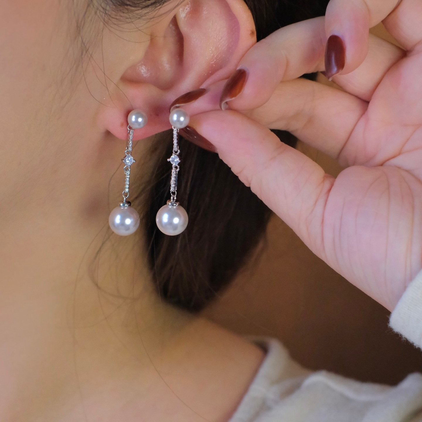 施家珍珠耳钉轻奢高级感女养耳洞耳环2025年新款爆款气质时尚耳饰