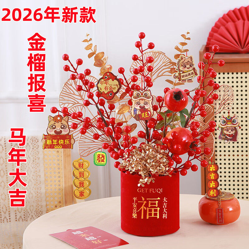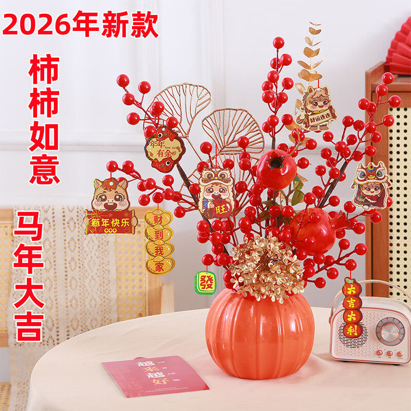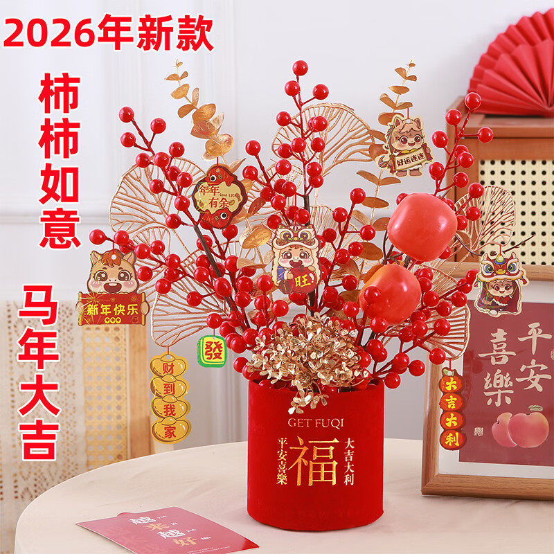 发财果红色红果冬青果假花仿真花摆设客厅新年装饰花婚庆花艺摆件