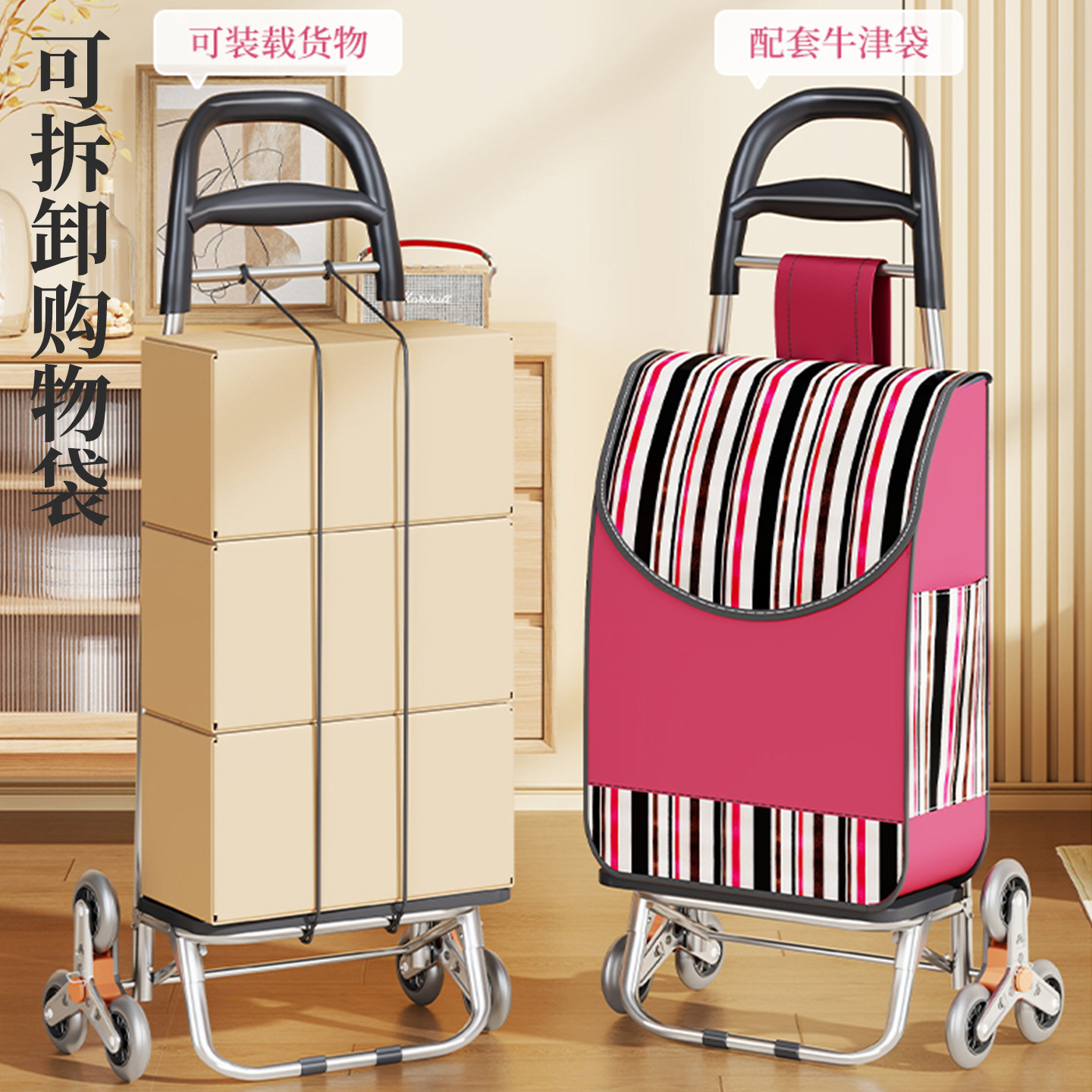 买菜爬楼梯小拉车便携购物车家用可折叠拉杆车老年人逛手推车承重