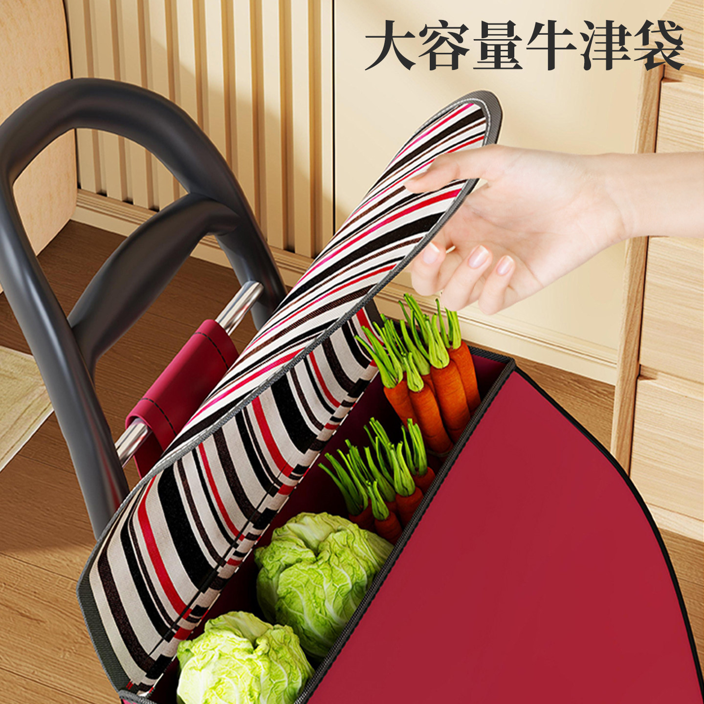 双层购物车布袋买菜车手拉杆车袋子小拉车推车布袋大号防水牛津包