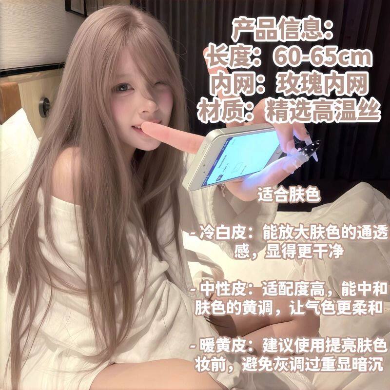 假发女奶茶粉灰棕层次长直发显白网红日常自然Lolita仿真发全头套
