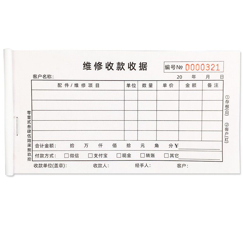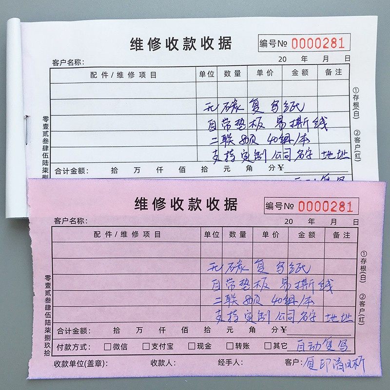 维修收款收据汽车维修清单机动机械修理H厂手机家用电器服务单定