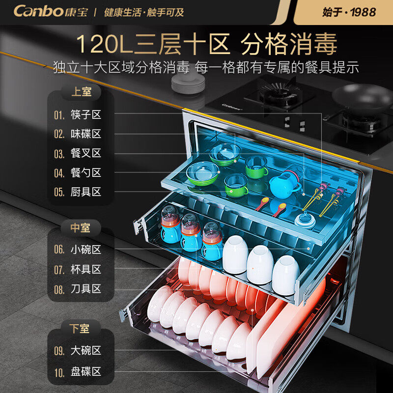 康宝嵌入式消毒柜磐石不锈钢家用厨房碗筷碗柜负离子烘干EN520