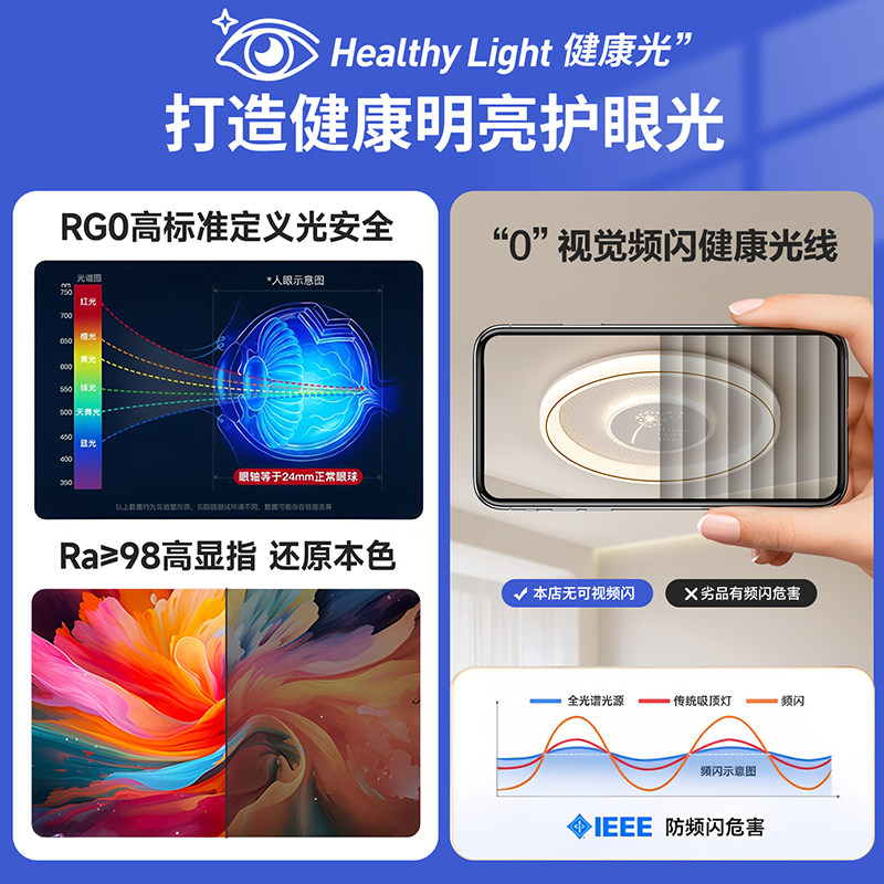 wow上下双光源卧室吸顶灯全光谱护眼高亮智能母婴护眼书房吸顶灯