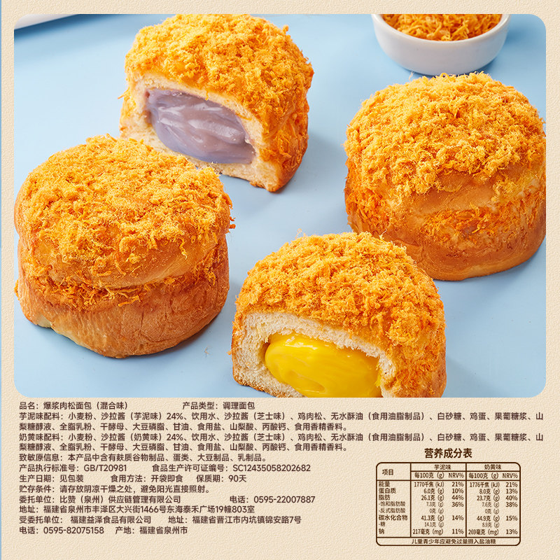 比比赞爆浆肉松面包 420g x1箱