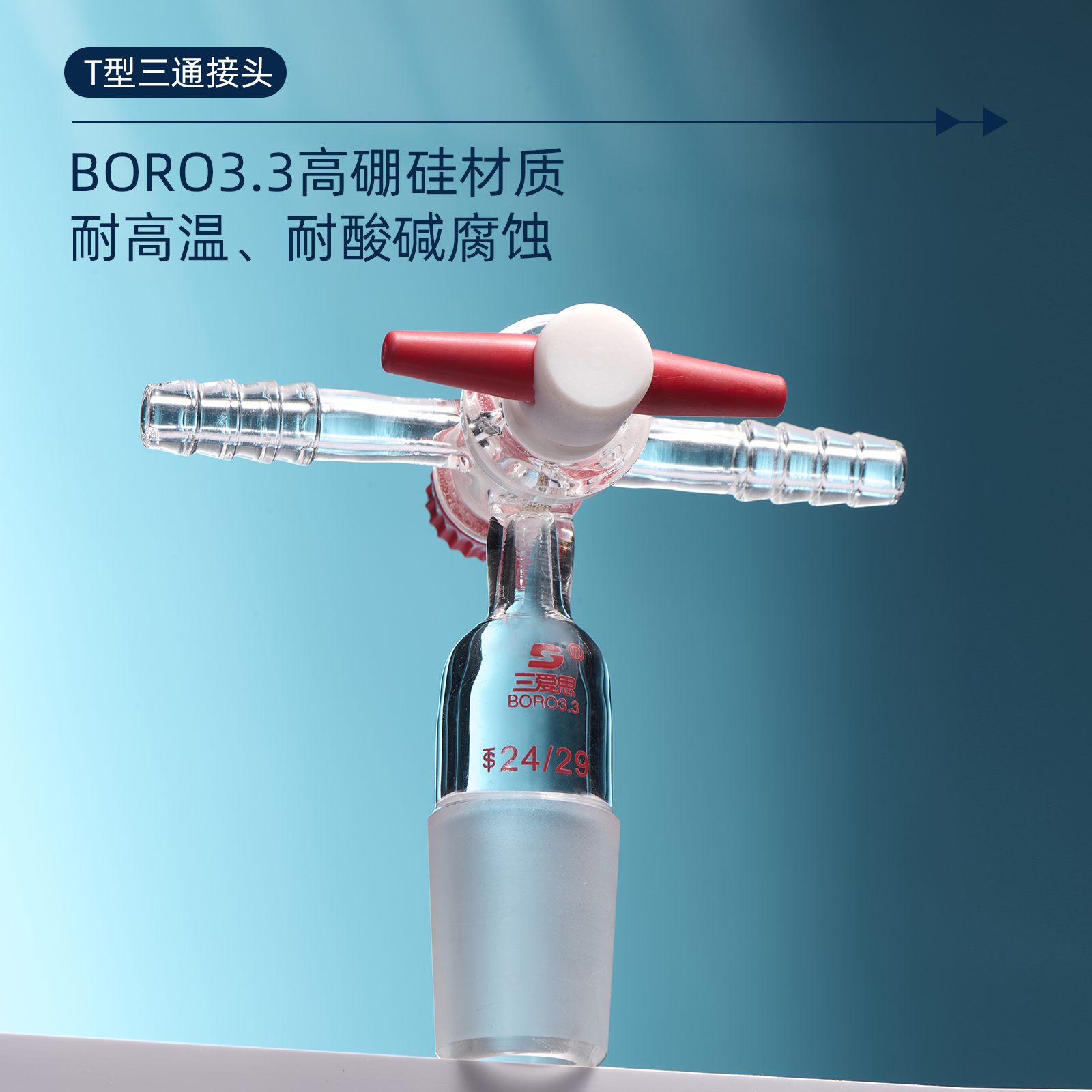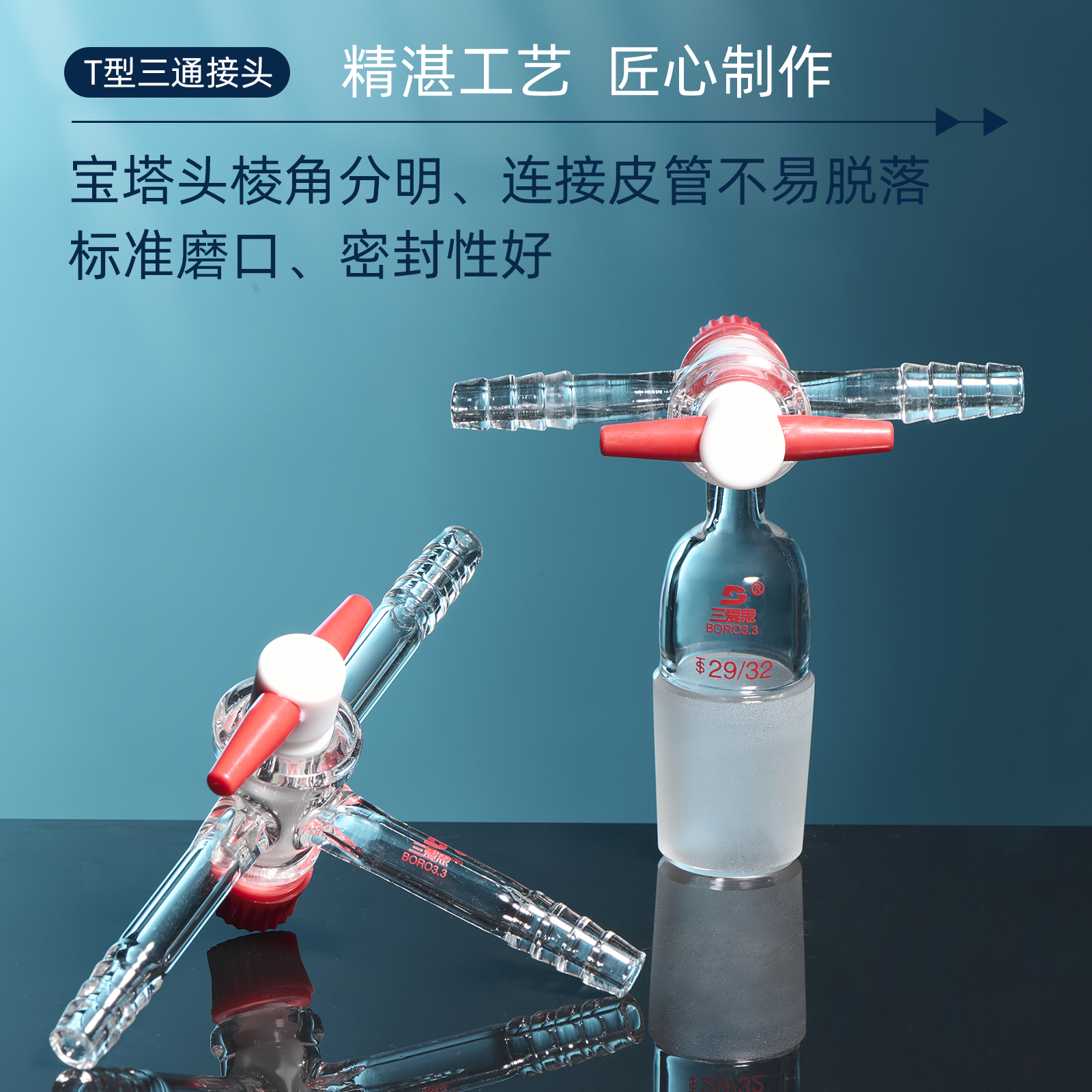 三爱思T形三通接头玻璃转接口导管活塞抽气接头导气管宝塔形状四氟阀门密封不漏仪器磨口14 19 24 34 40 50mm