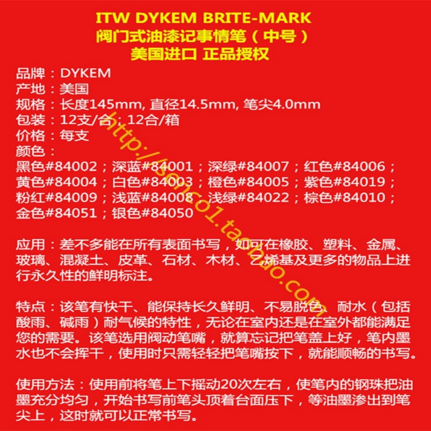 美国DYKEM BRITE-MARK阀门记号笔工业标记笔纤维笔快干油漆笔
