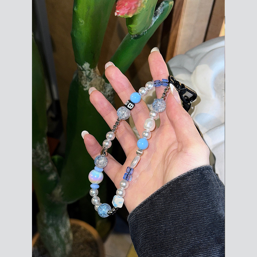「海洋传说」人造水晶珠子手机壳链条ins高品质手机壳链平替苞米