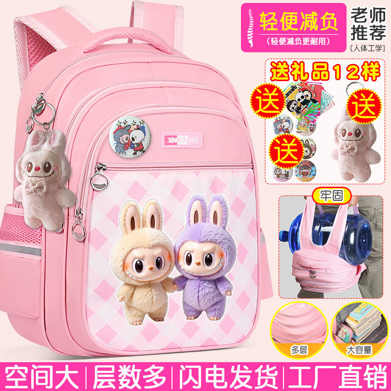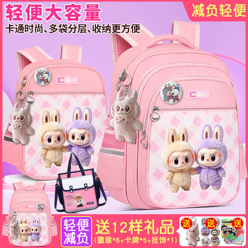 拉布布儿童书包女小学生一二年级女孩轻便卡通可爱粉色幼儿园背包