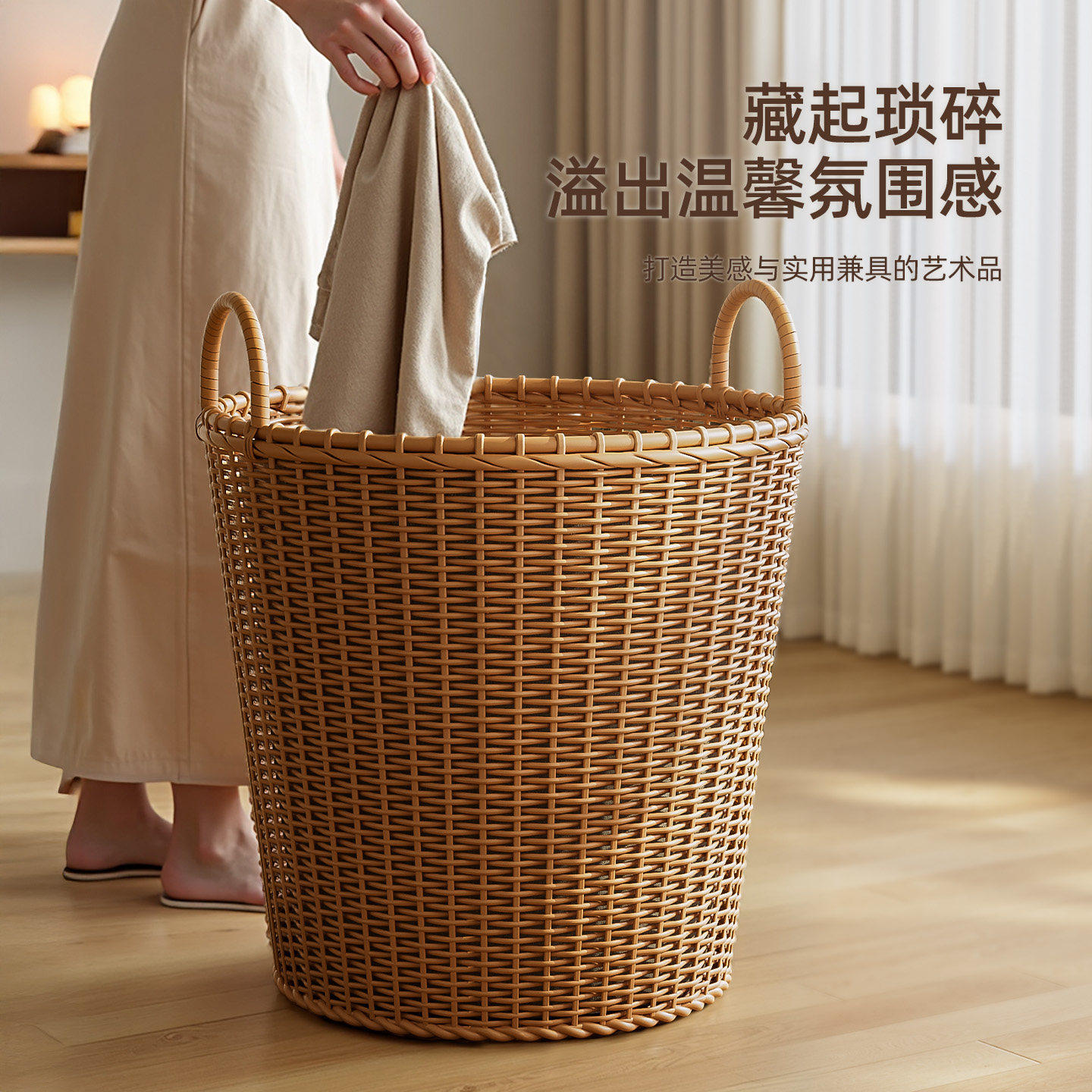 脏衣篓家用高颜值装脏衣服收纳筐大容量仿藤编脏衣篮卫生间收纳框