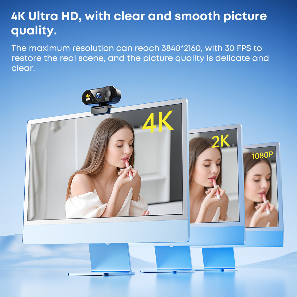 4K超高清电脑摄像头带麦克风usb台式家用直播网课视频会议盖美颜