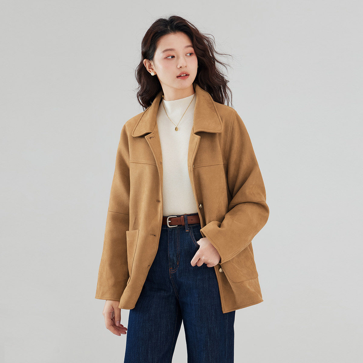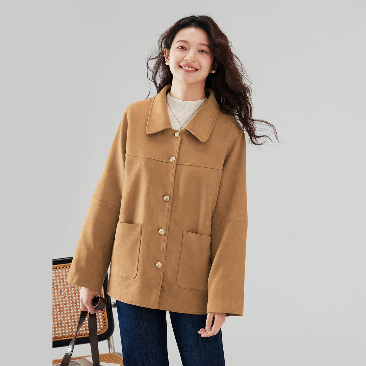 one more美拉德宽松高级感外套女秋季女装小个子复古翻领西服