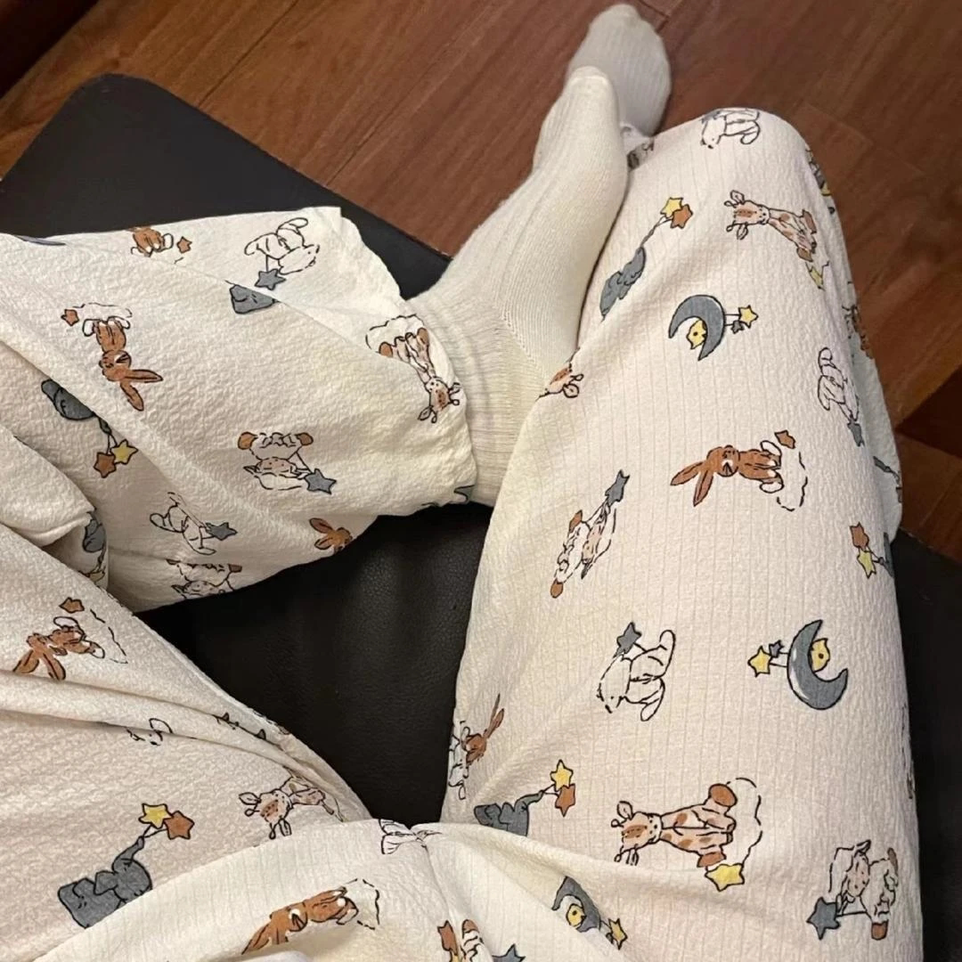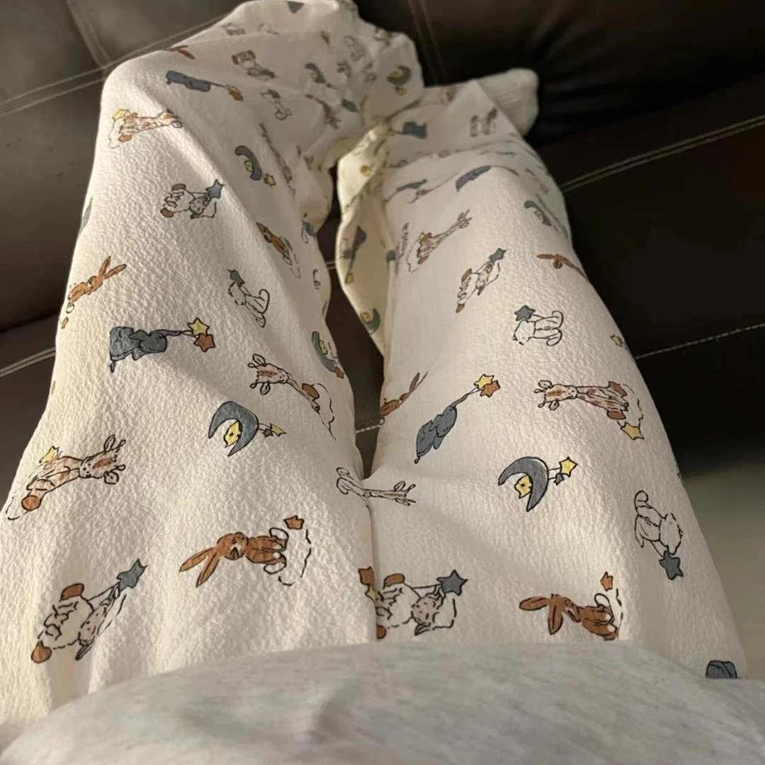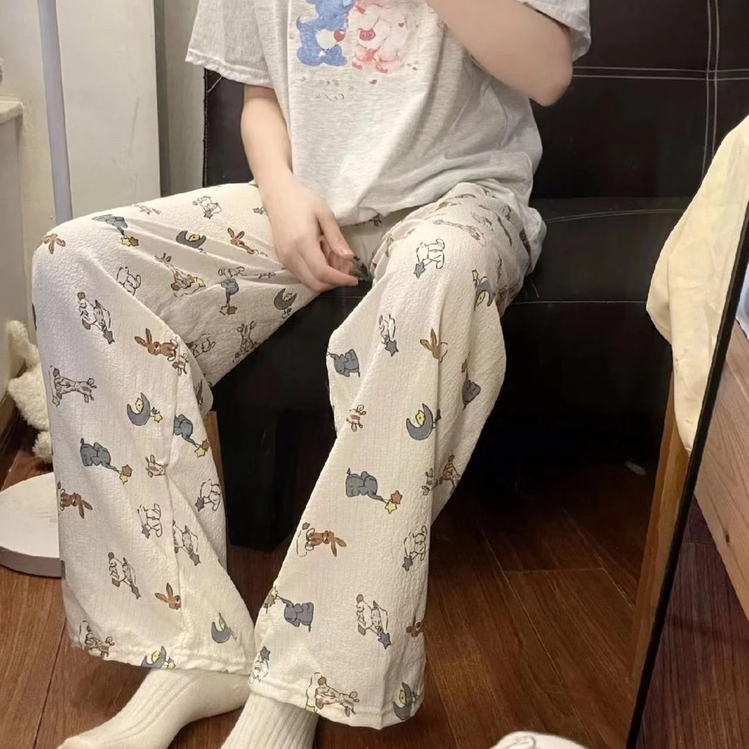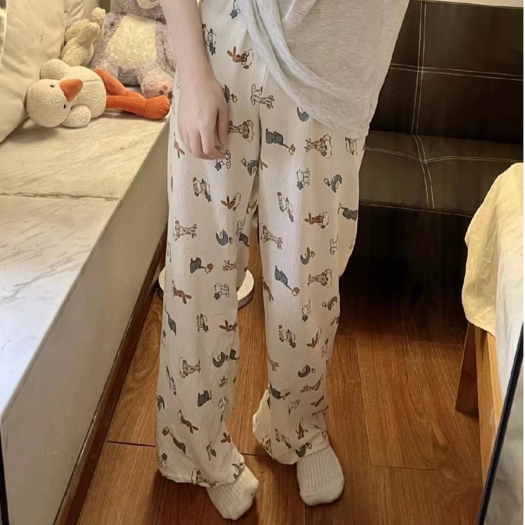 2025新款睡裤女夏季薄款长裤学生宿舍宽松休闲家居裤条纹印花格子