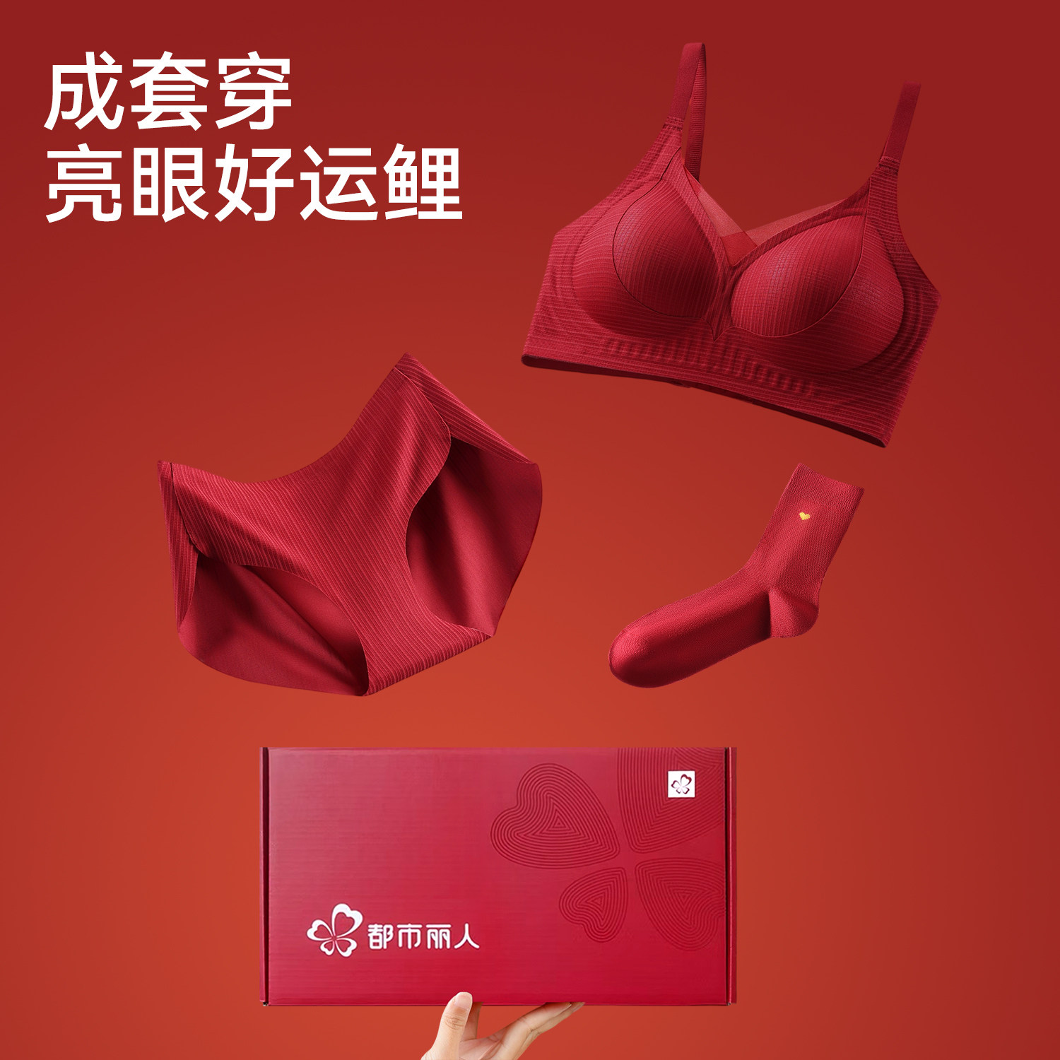 都市丽人红色内衣内裤女结婚文胸套装礼盒新娘本命年聚拢蛇年礼物