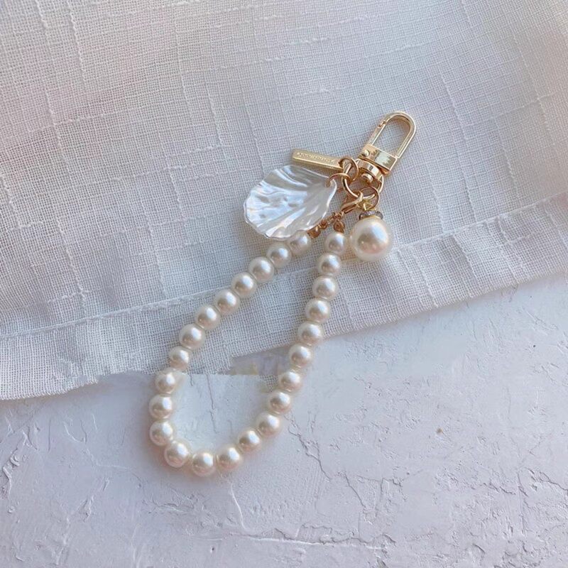 原创复古小香风珍珠链仿贝壳花片小巧精致钥匙链包包挂件挂饰创意