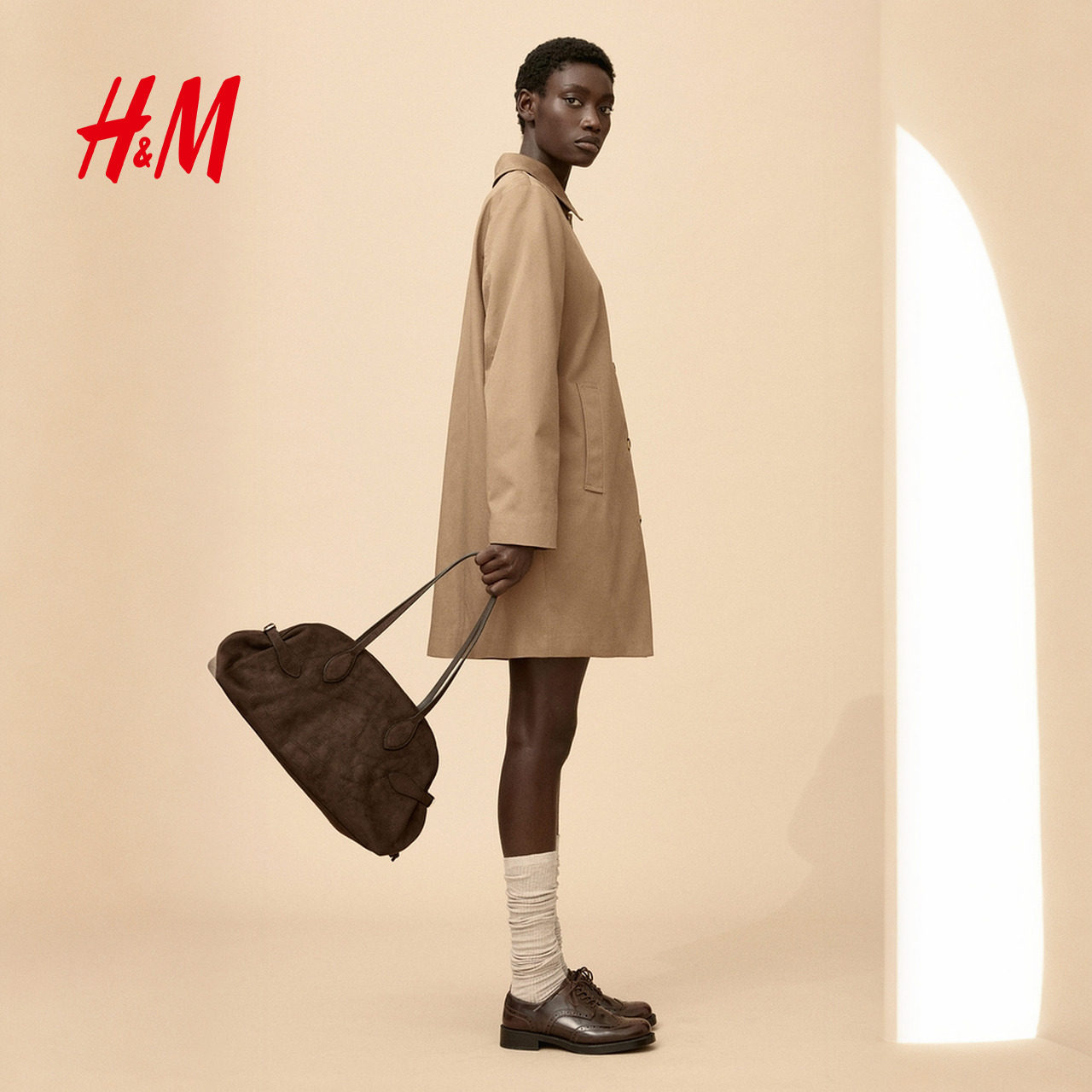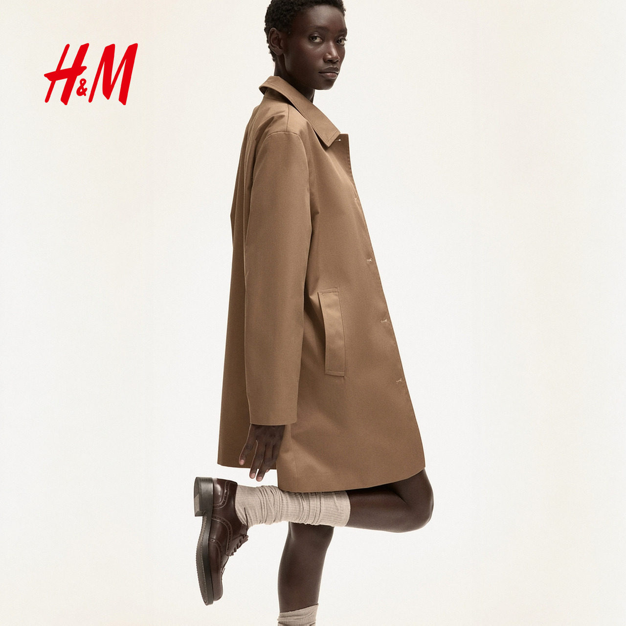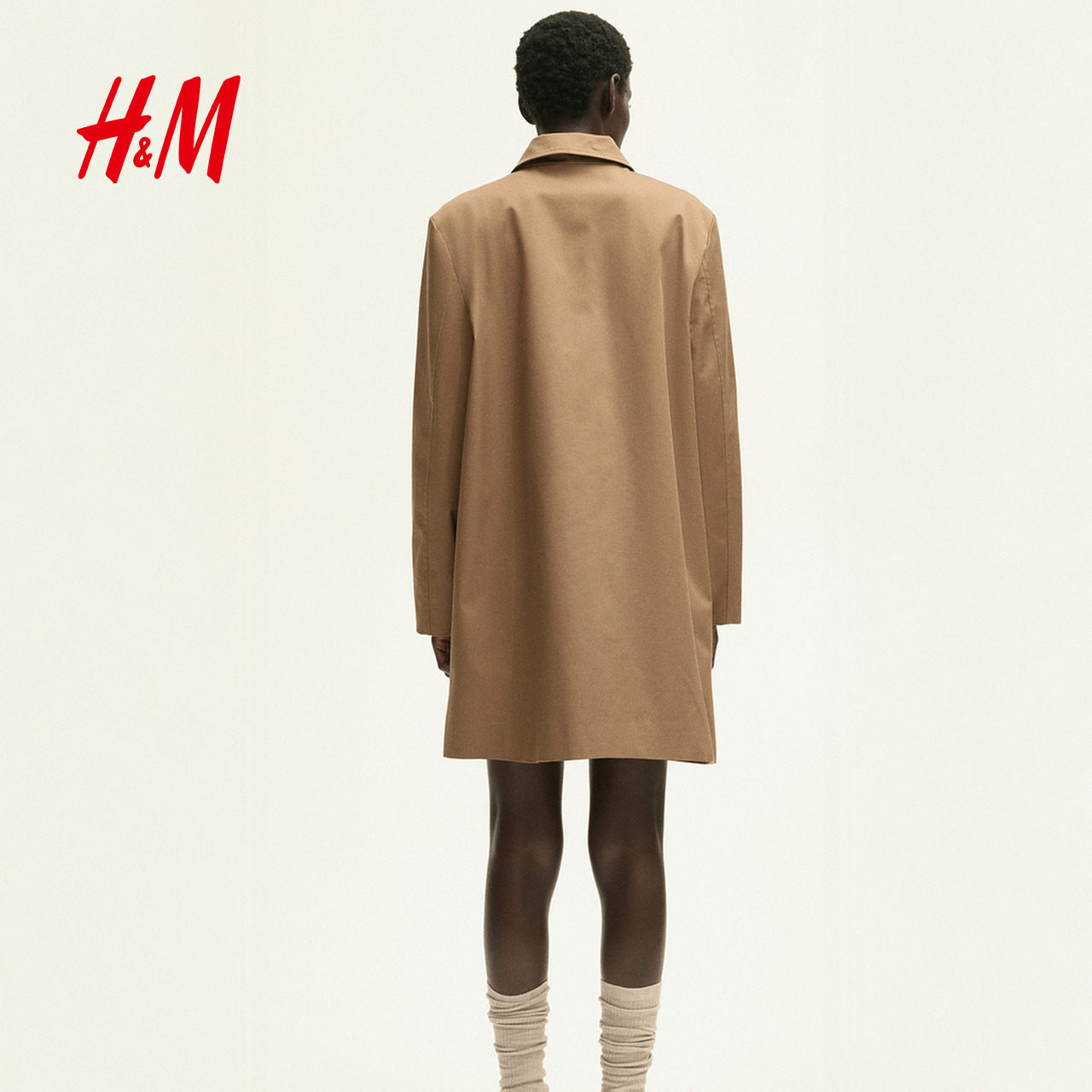 HM女装风衣冬季巴恩风长款外套休闲轻便单排扣气质大衣1282722