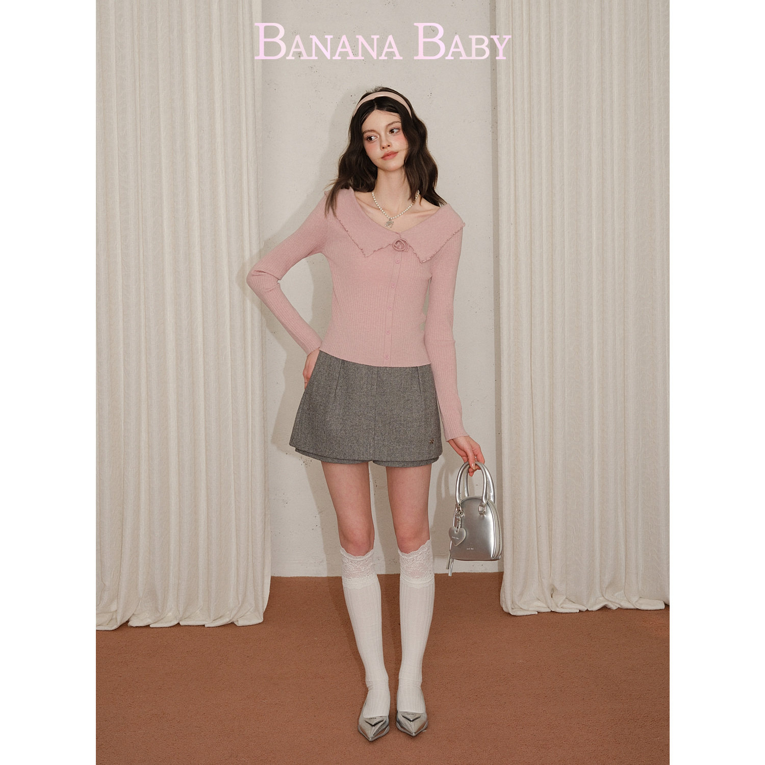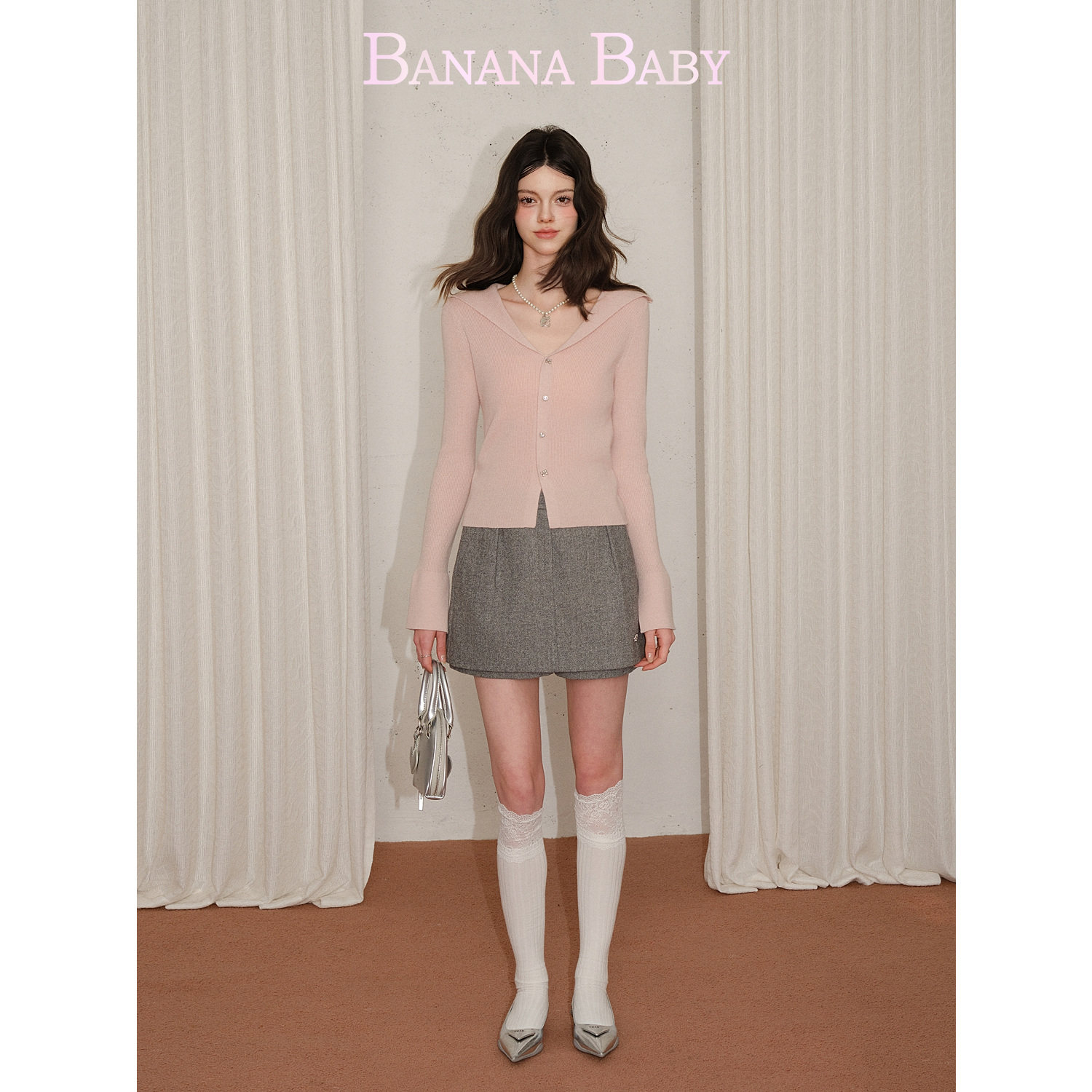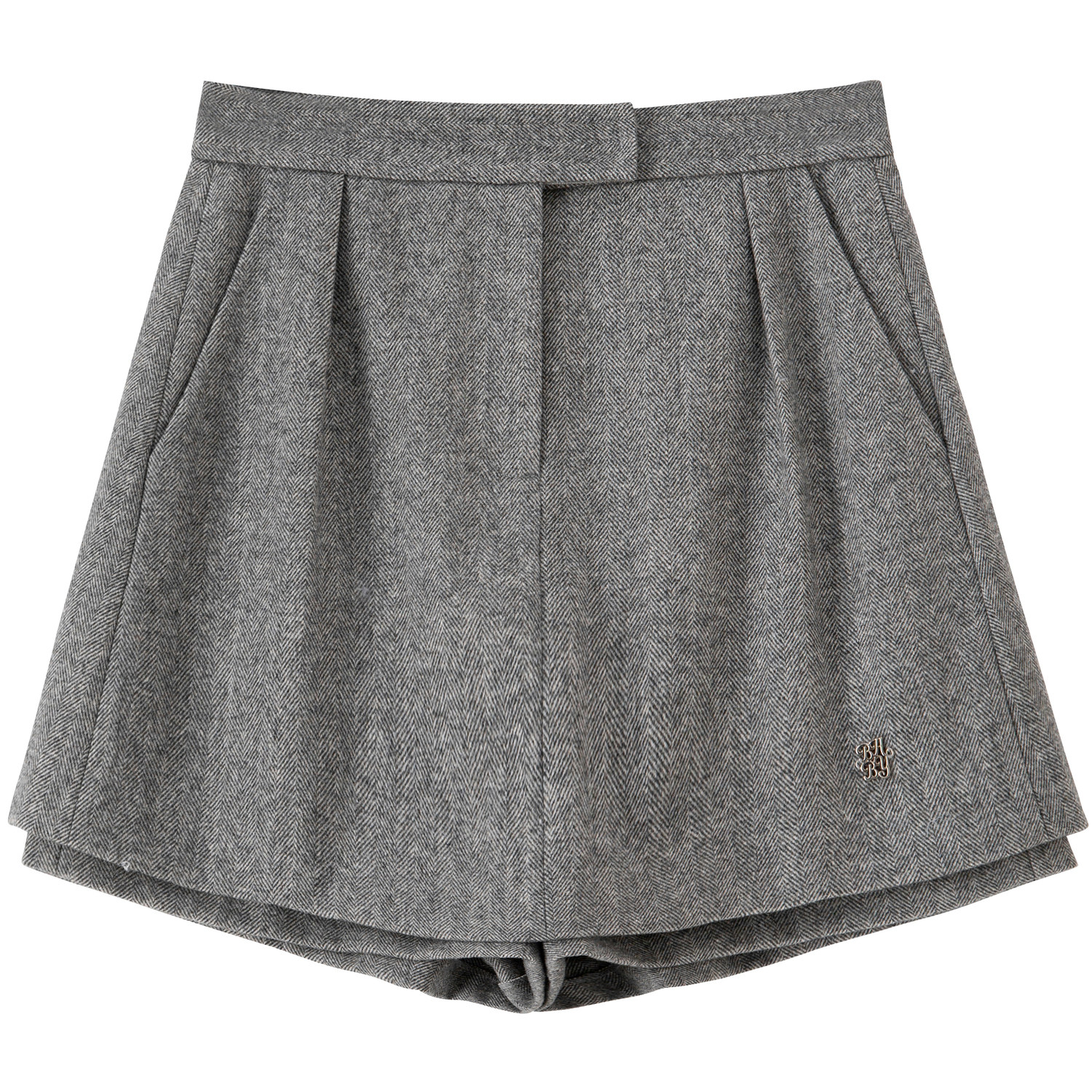 【绵羊毛】BANANA BABY2026年春季新款百搭高腰毛呢A摆裙裤女短裤